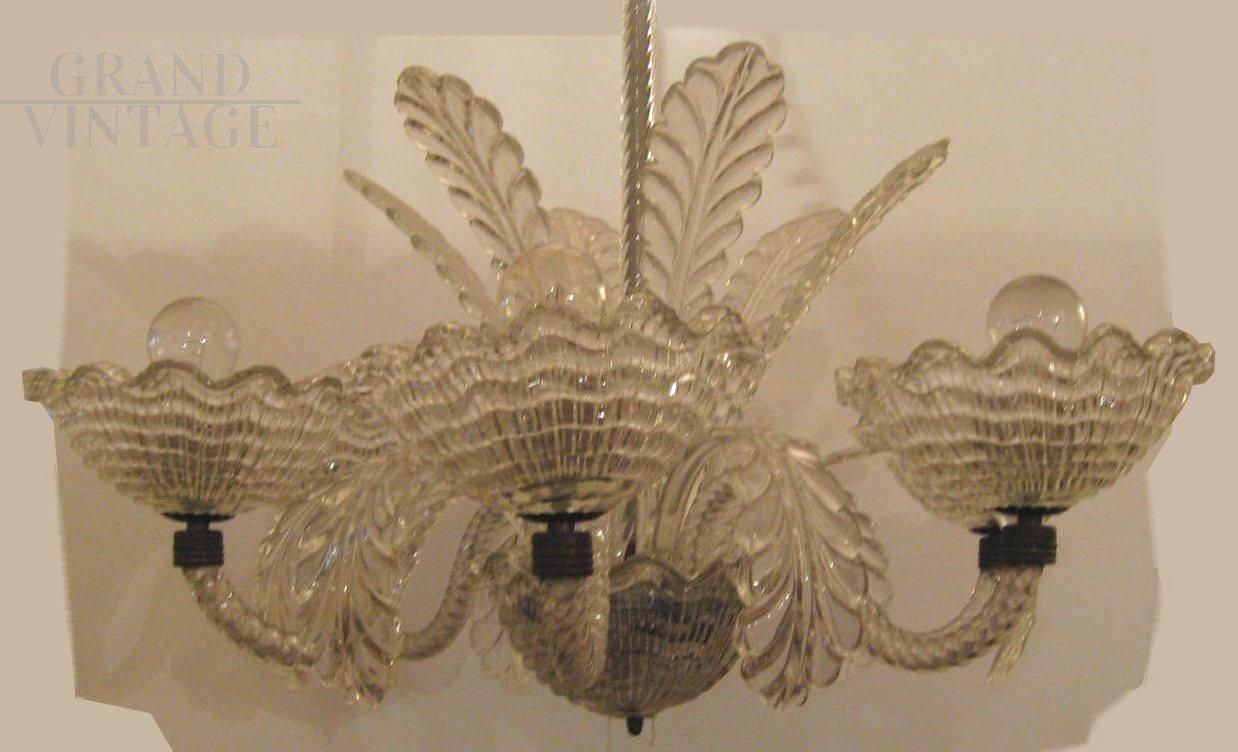 Lampadario in vetro di Murano anni '40 stile Barovier