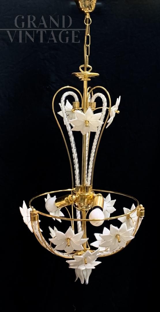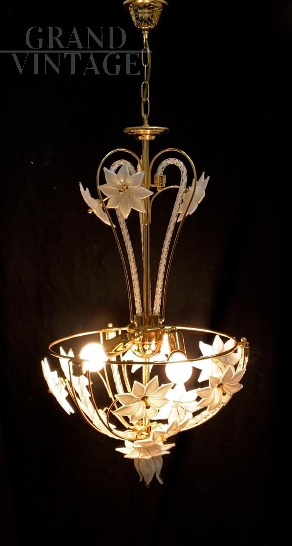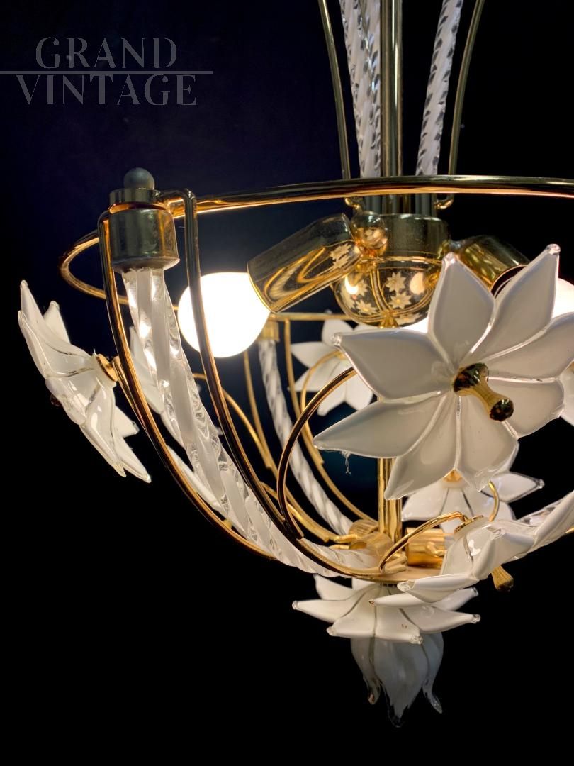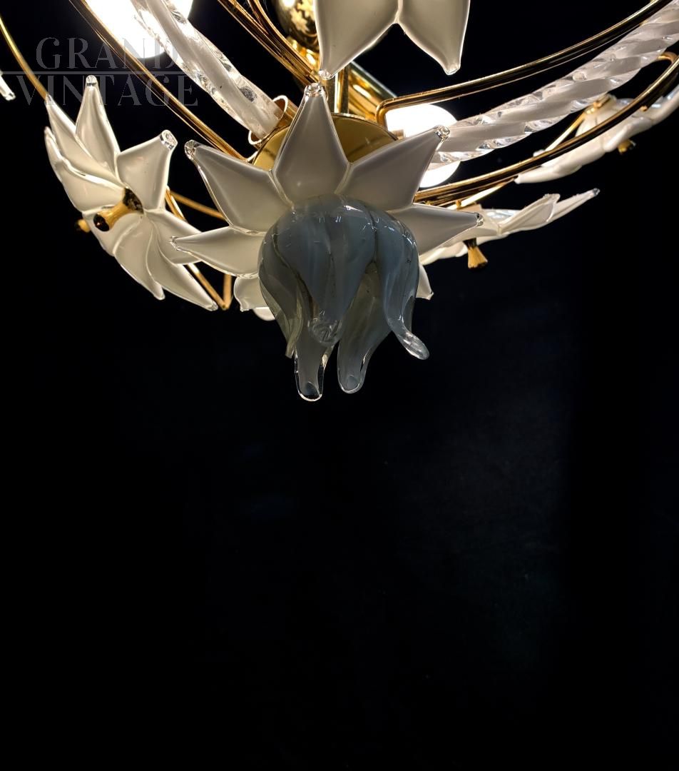 Lampadario La Murrina in vetro di Murano a fiori, anni '80