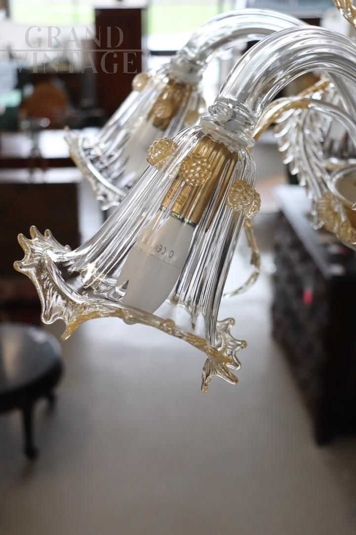 Lampadario La Murrina vintage in vetro di Murano dorato con 6 luci