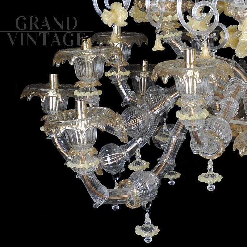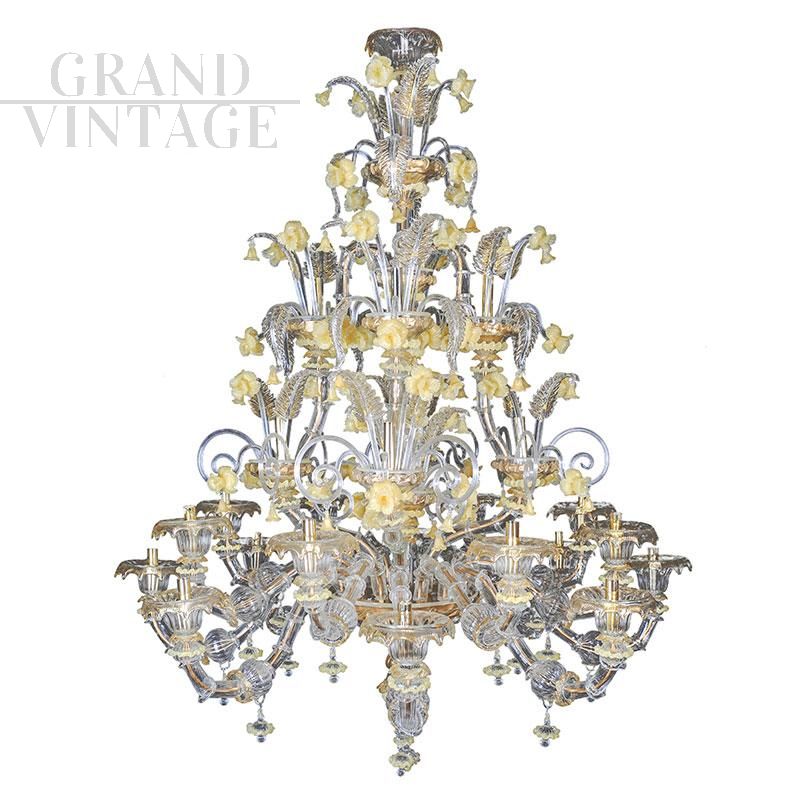 Lampadario Rezzonico in vetro di Murano dorato con narcisi gialli