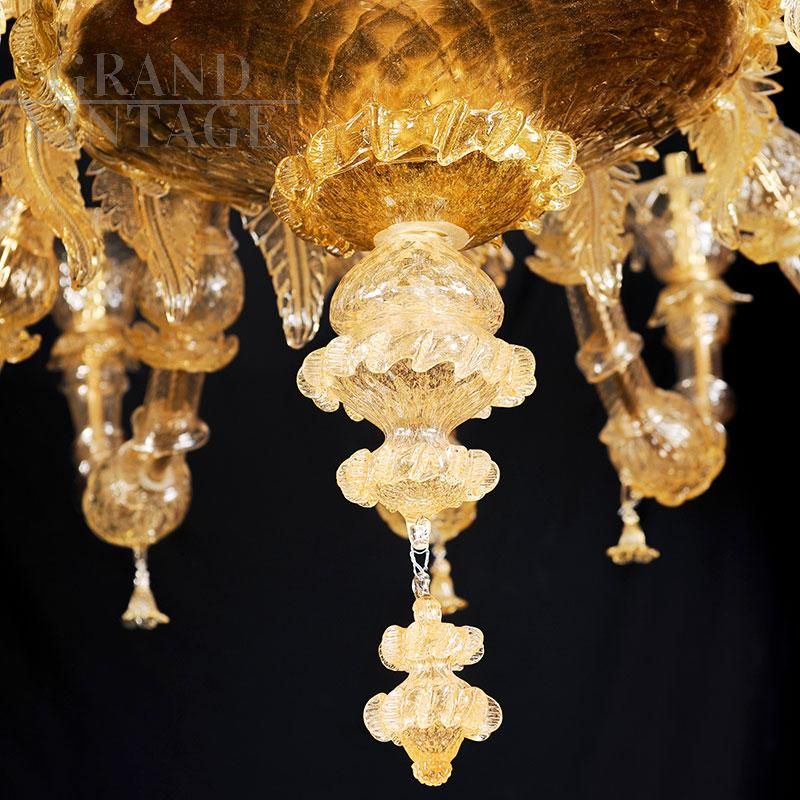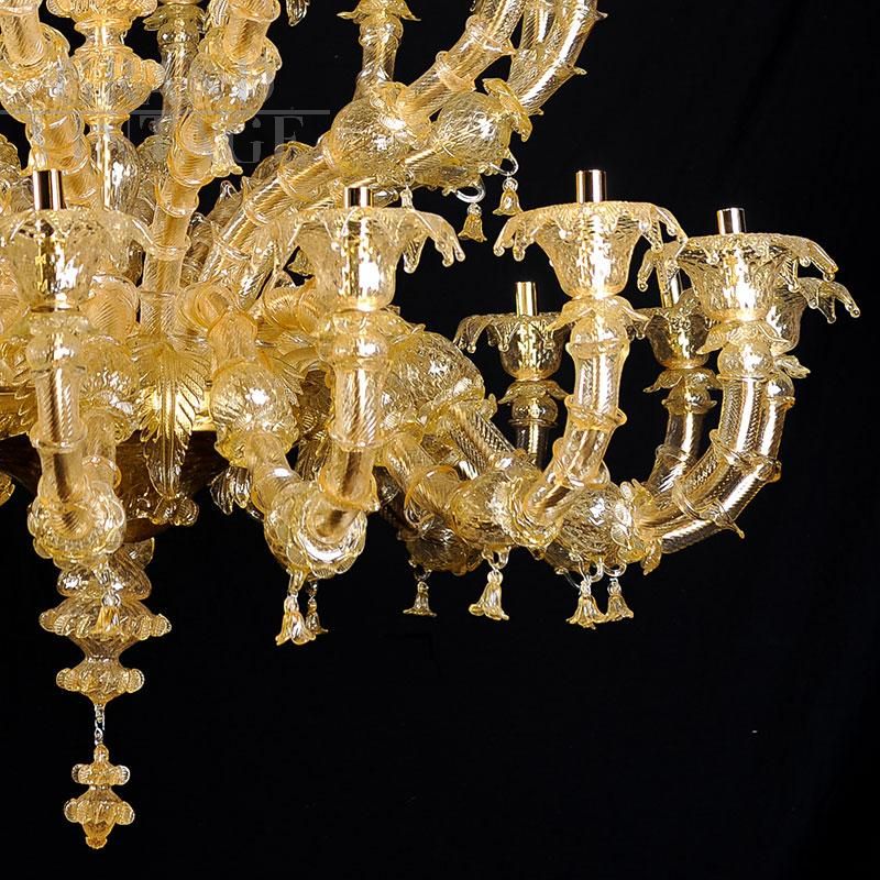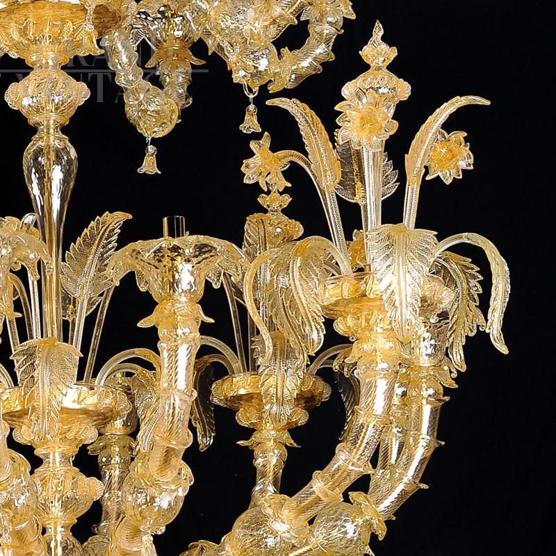Lampadario Rezzonico in vetro di Murano lavorato con foglia d'oro 24 carati