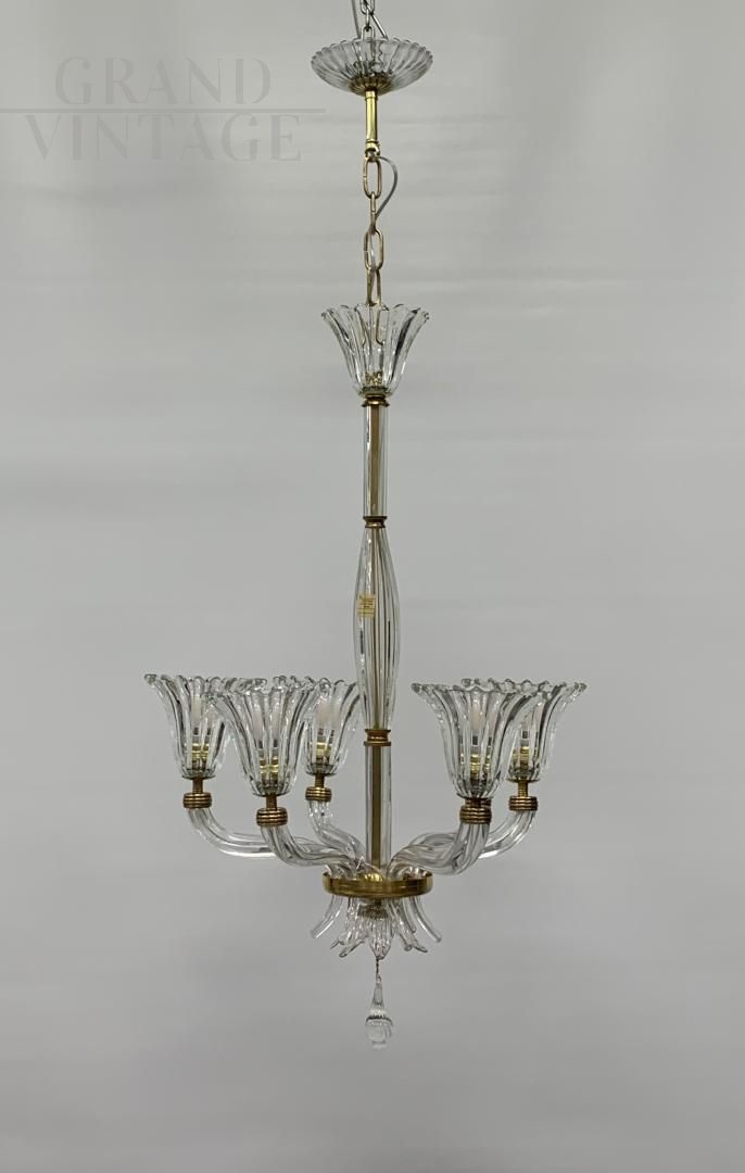 Fantastico lampadario degli anni '50 circa della ditta Seguso, tutto originale, ha pochissimi segni del tempo, vetri fantastici color trasparente. Impianto elettrico rifatto e funzionante. Meraviglioso vetro trasparente lavorato a mano su stampo. Ogni vetro si smonta dalla struttura. Struttura portante del lampadario in ferro e ottone. I vetri non sono crepati anche se hanno qualche segno del tempo, in particolare una piccola sbeccatura nell'asta. Ottimo elemento adatto ad illuminare diverse stanze: dalla cucina alla sala, dall'entrata alla camera e bagno. Il lampadario ha 6 punti luce con attacchi per lampadine ditipo E27, si consiglia l'utilizzo di lampadine al led.