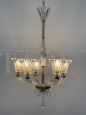 Lampadario Seguso in vetro di Murano trasparente e ottone