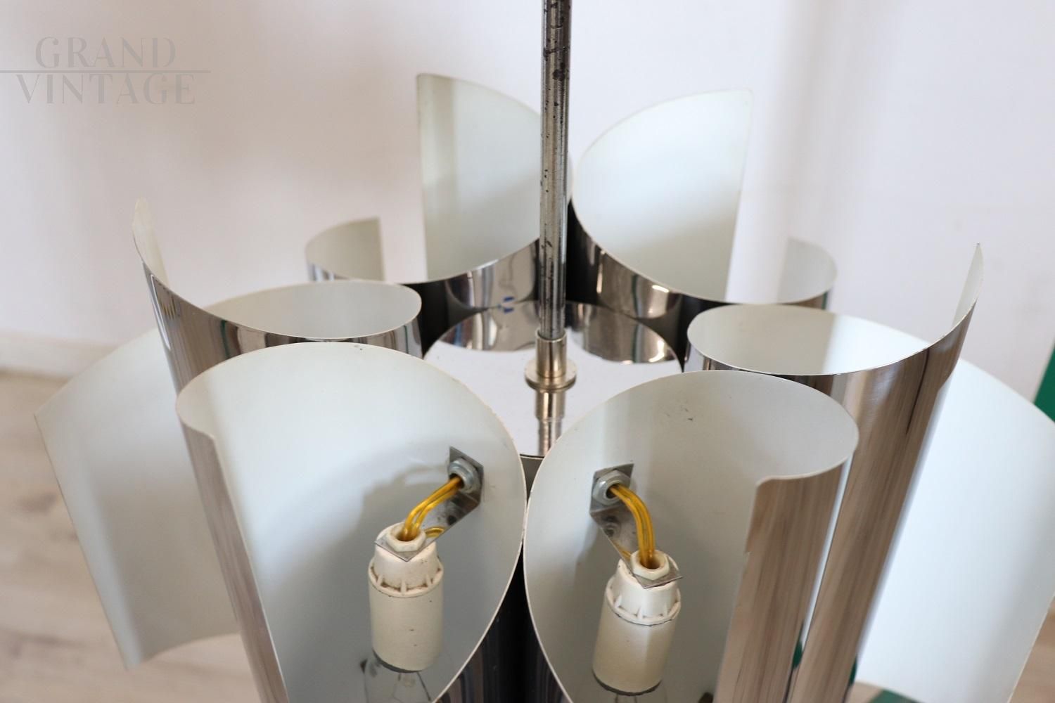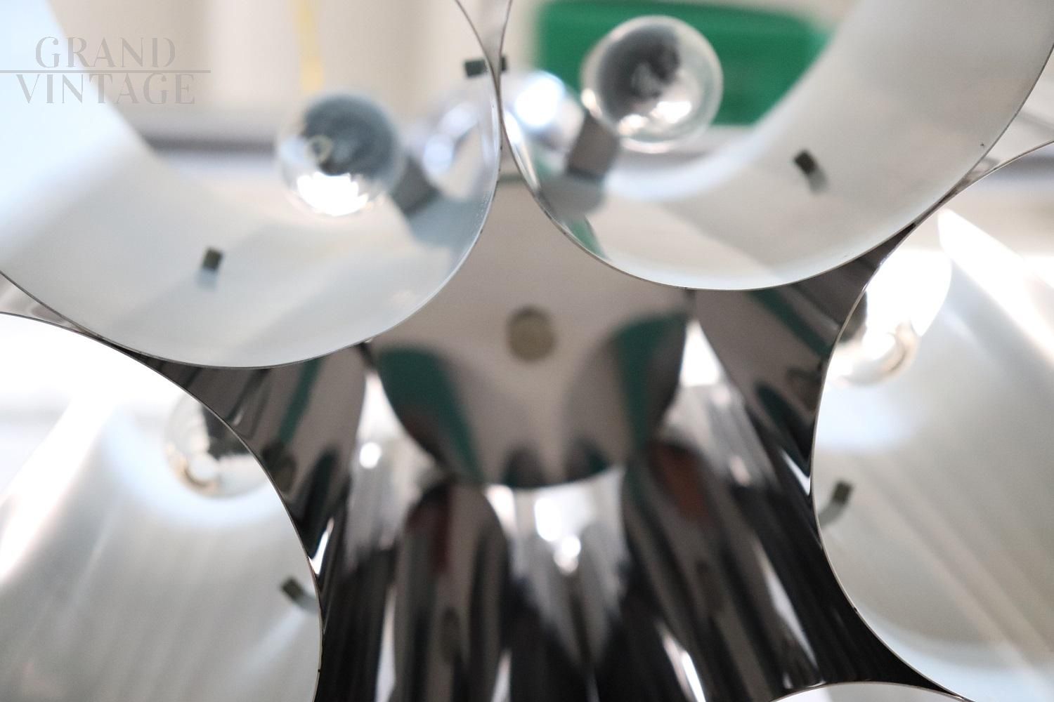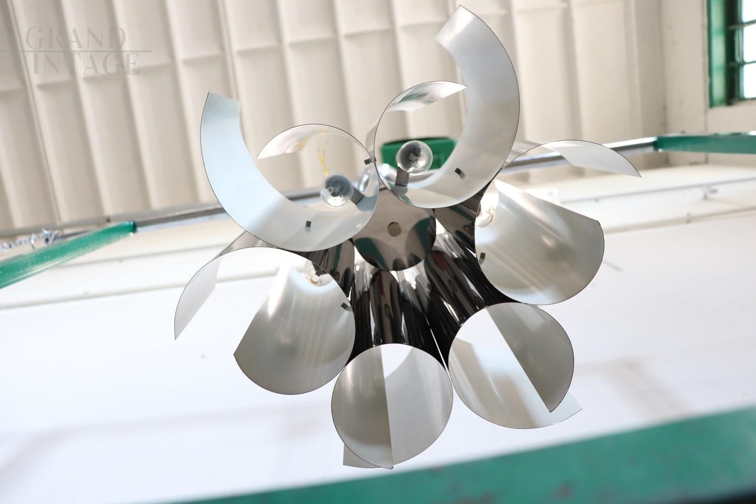 Bellissimo lampadario italiano design space age in acciaio a sei luci, anni ’70. Condizioni perfette e perfettamente funzionante, ottimo prezzo trattabile.