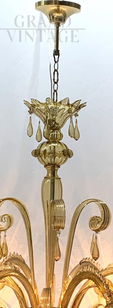 Lampadario Venini in vetro di Murano color ambra anni '30 restaurato