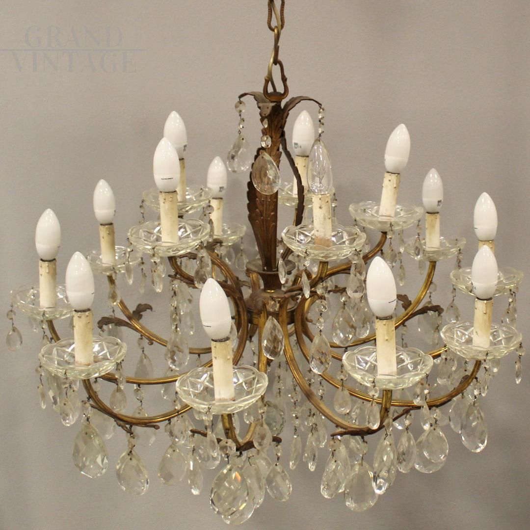 Lampadario vintage con gocce di cristallo a 15 luci