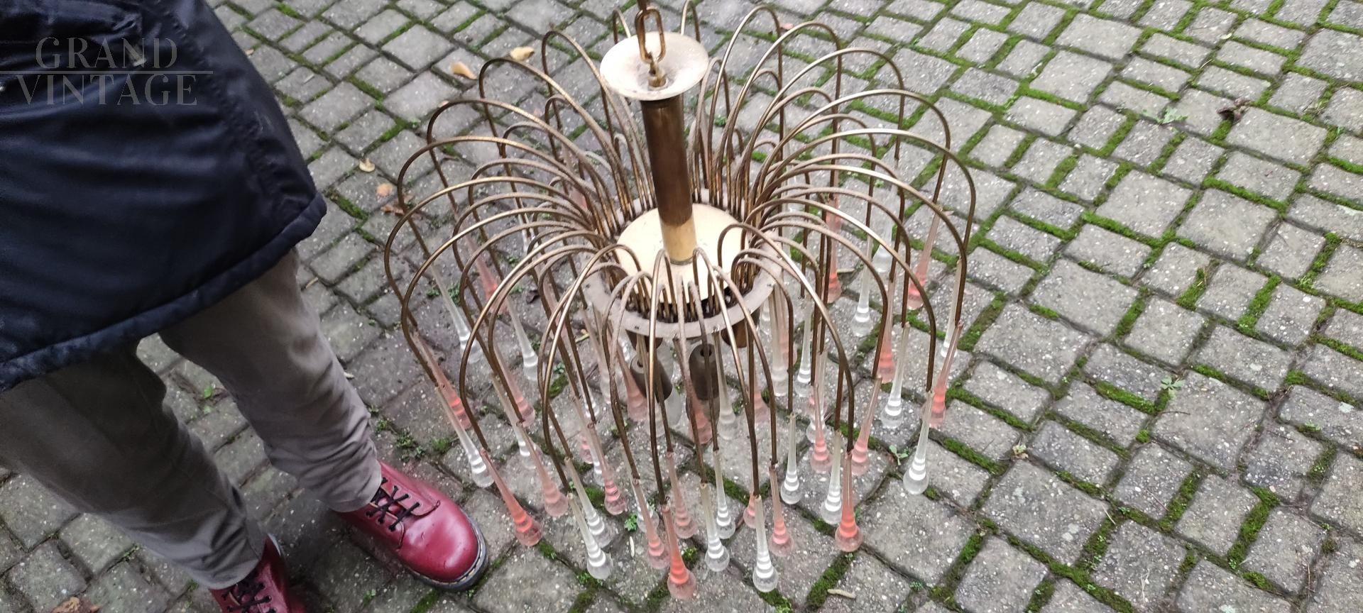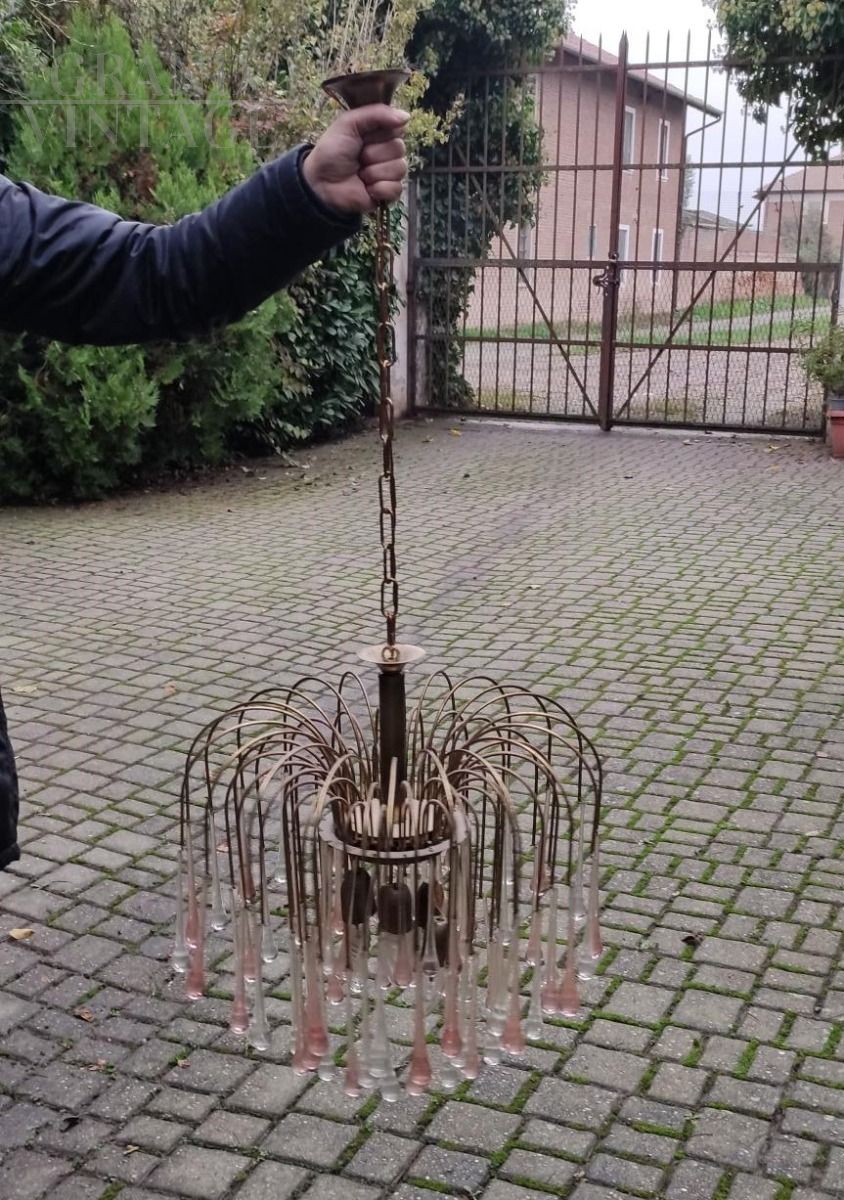 Lampadario Vistosi a cascata con gocce in vetro di Murano rosa, anni '70