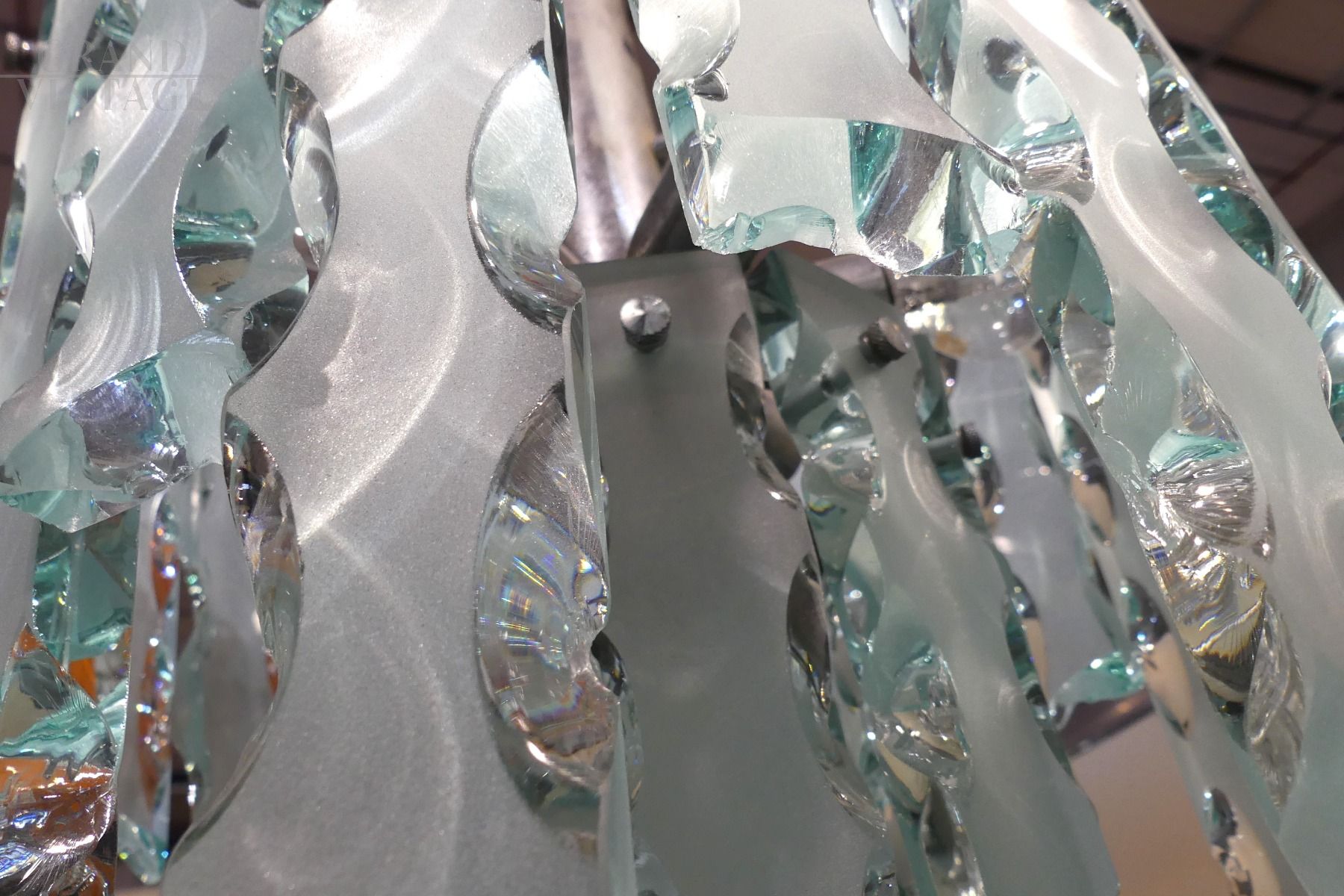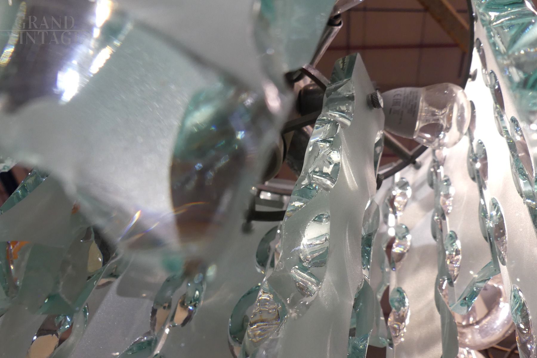 Lampadario Vistosi con lastre di vetro satinate e lavorate ai bordi, anni '70