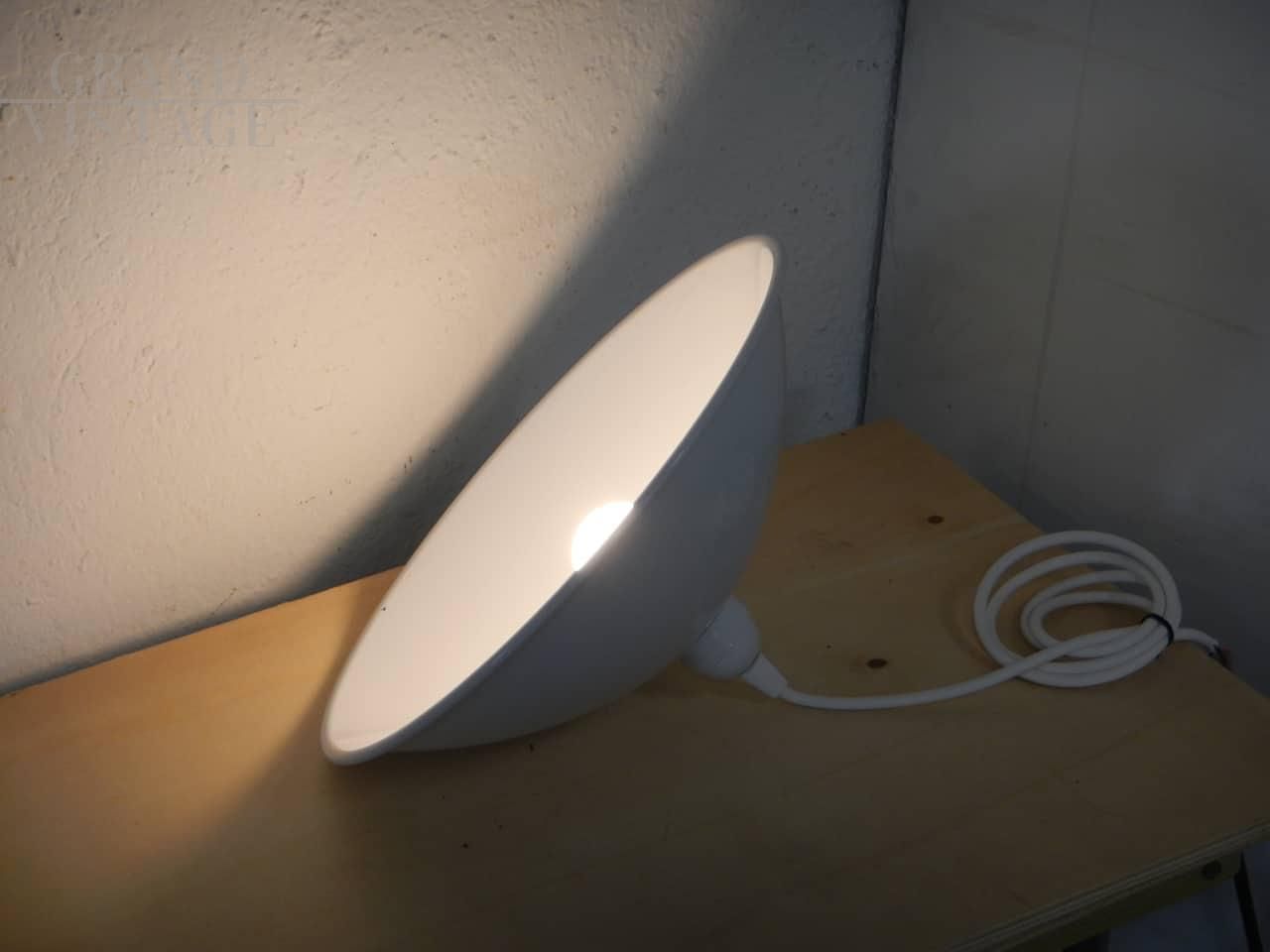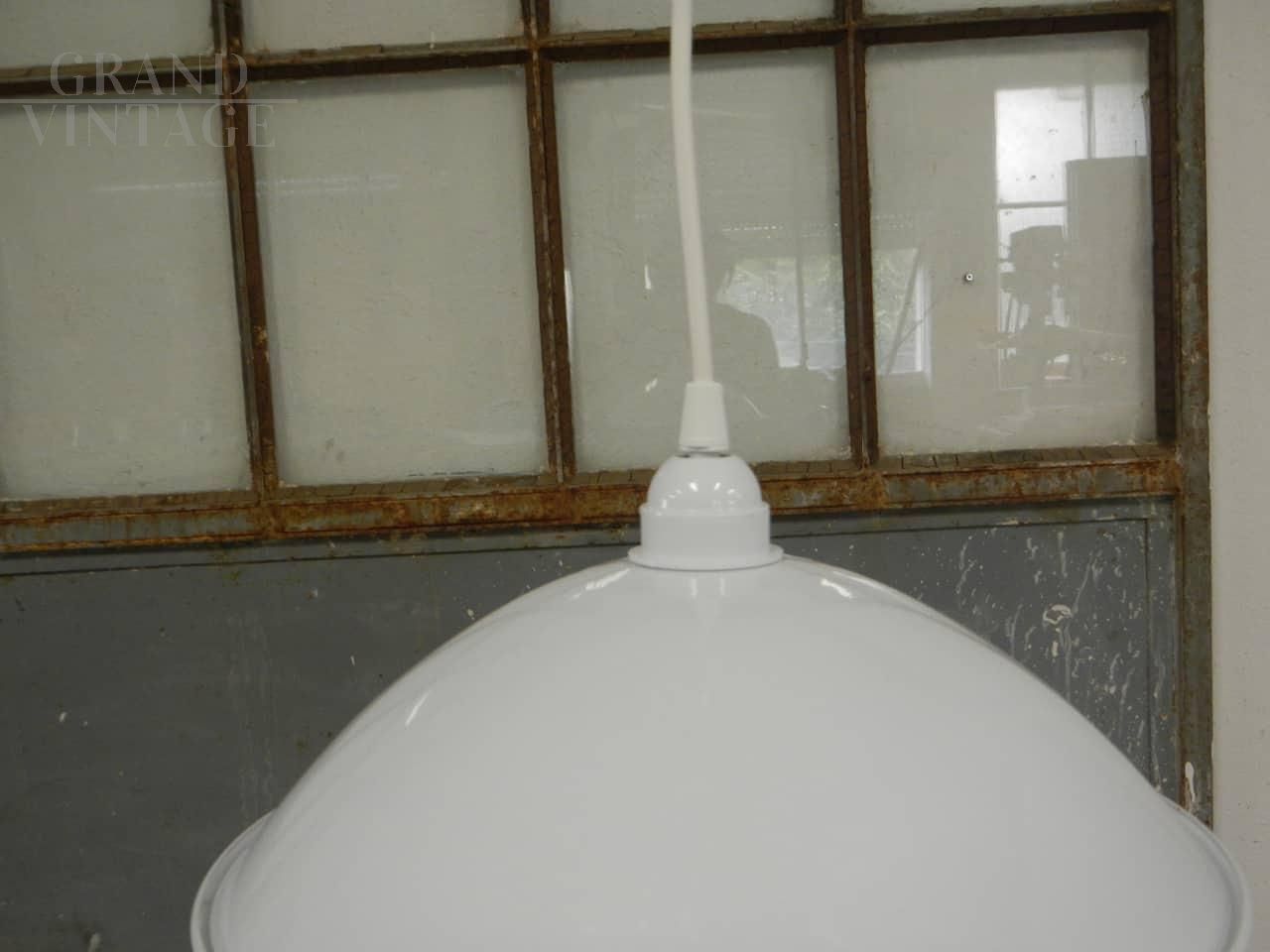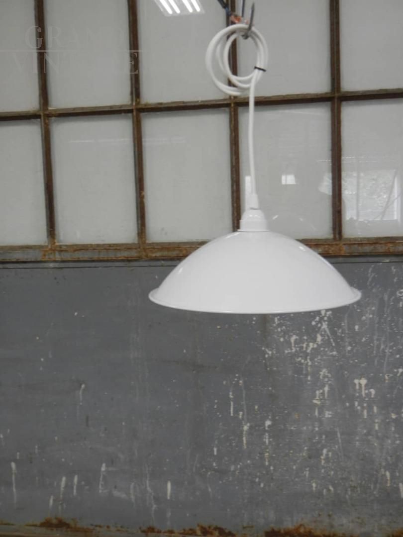 Lampada a sospensione a ciotola in metallo smaltato bianco, stile industriale anni '80, impianto elettrico funzionanteDisponibili 15 pezzi, il prezzo si riferisce al singolo pezzo.