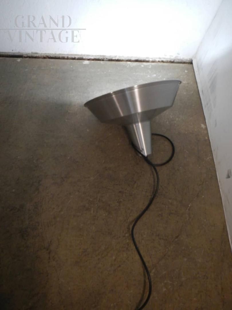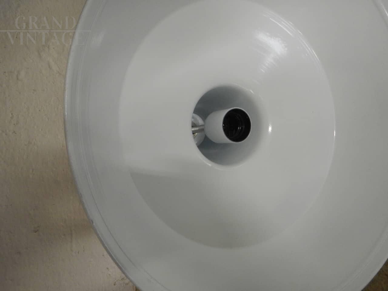 Lampade industriali a sospensione in alluminio con interno bianco, dalla tipica forma a imbuto, prodotte dalla ditta Nuova Seminara, Torino, Italia. In ottime condizioni, impianto elettrico ricablato. Fornite senza lampadina.