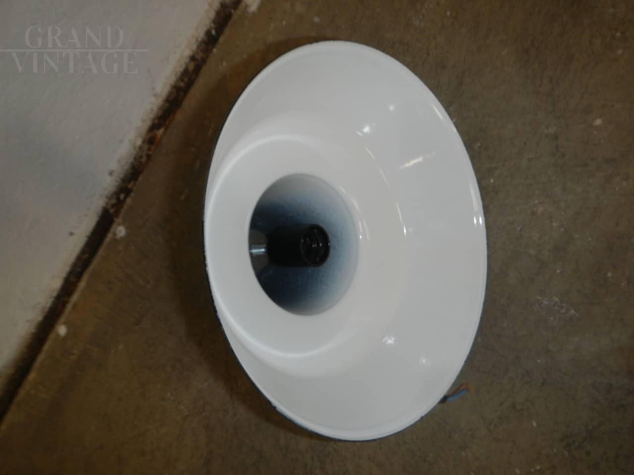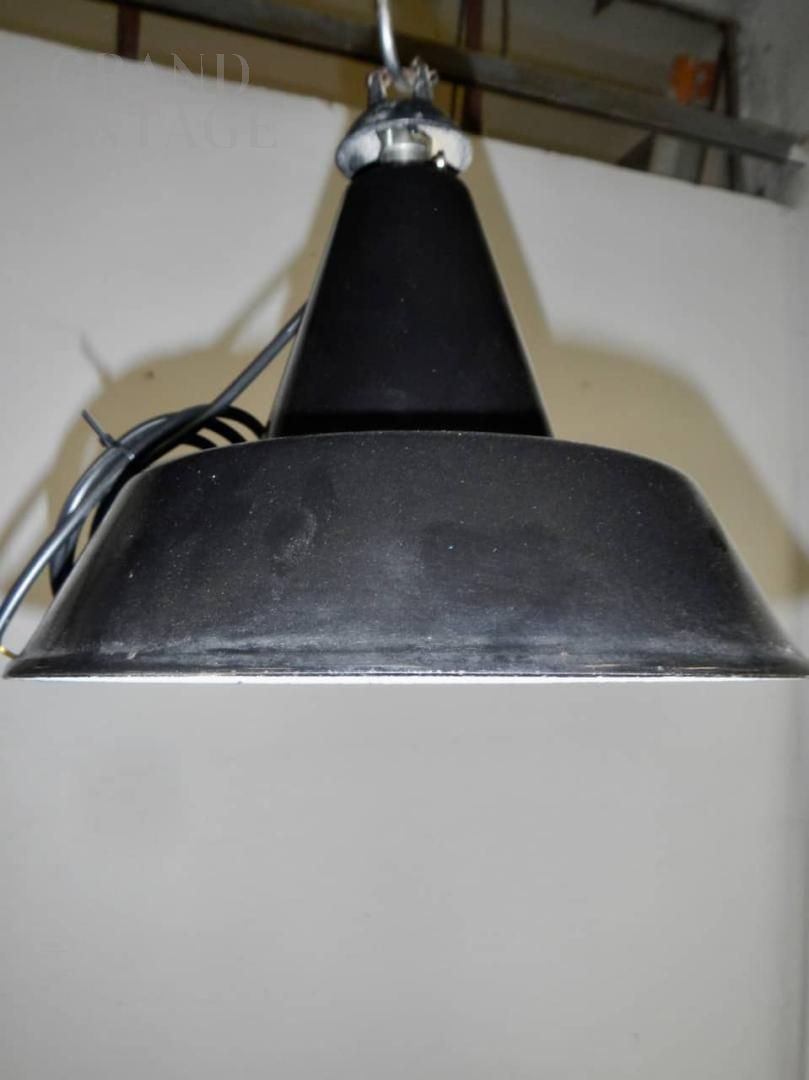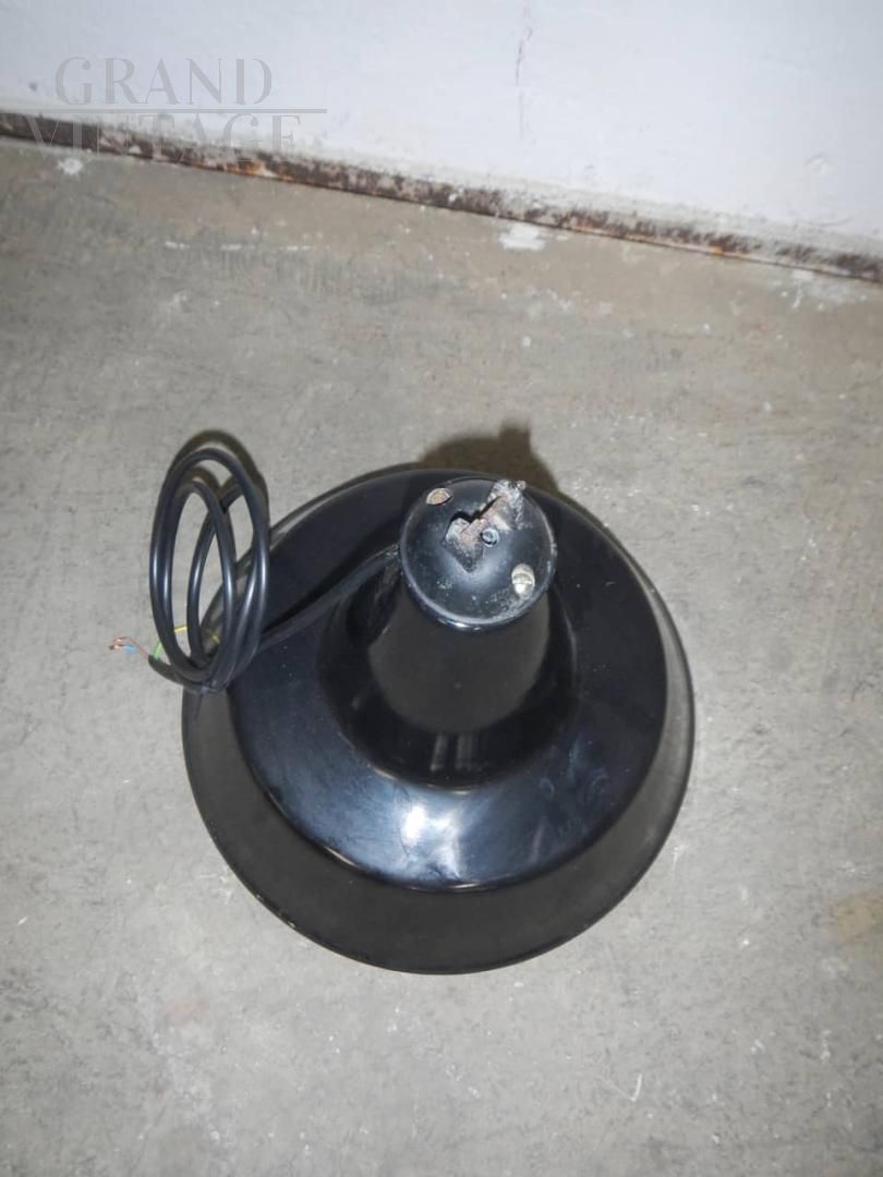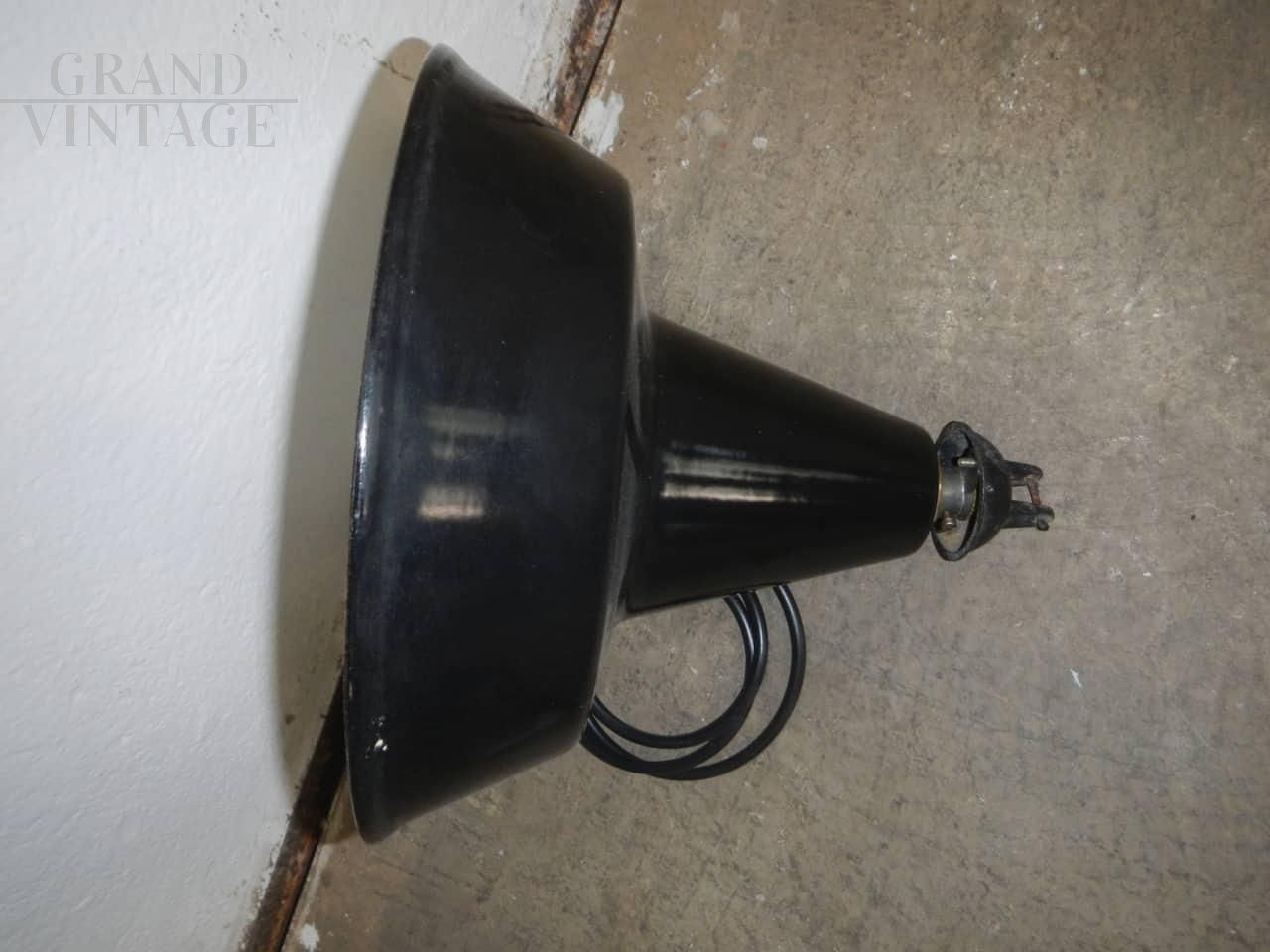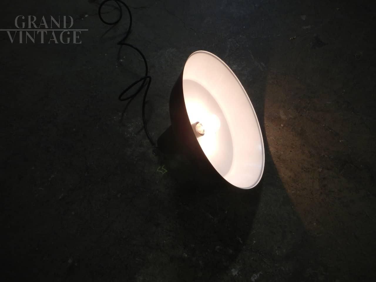 Lampada industriale in metallo nero e interno color bianco. Ricablata e funzionante.