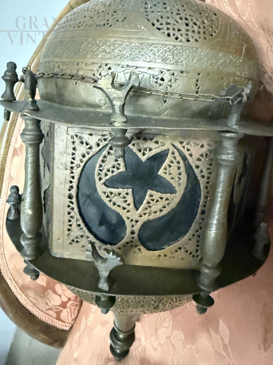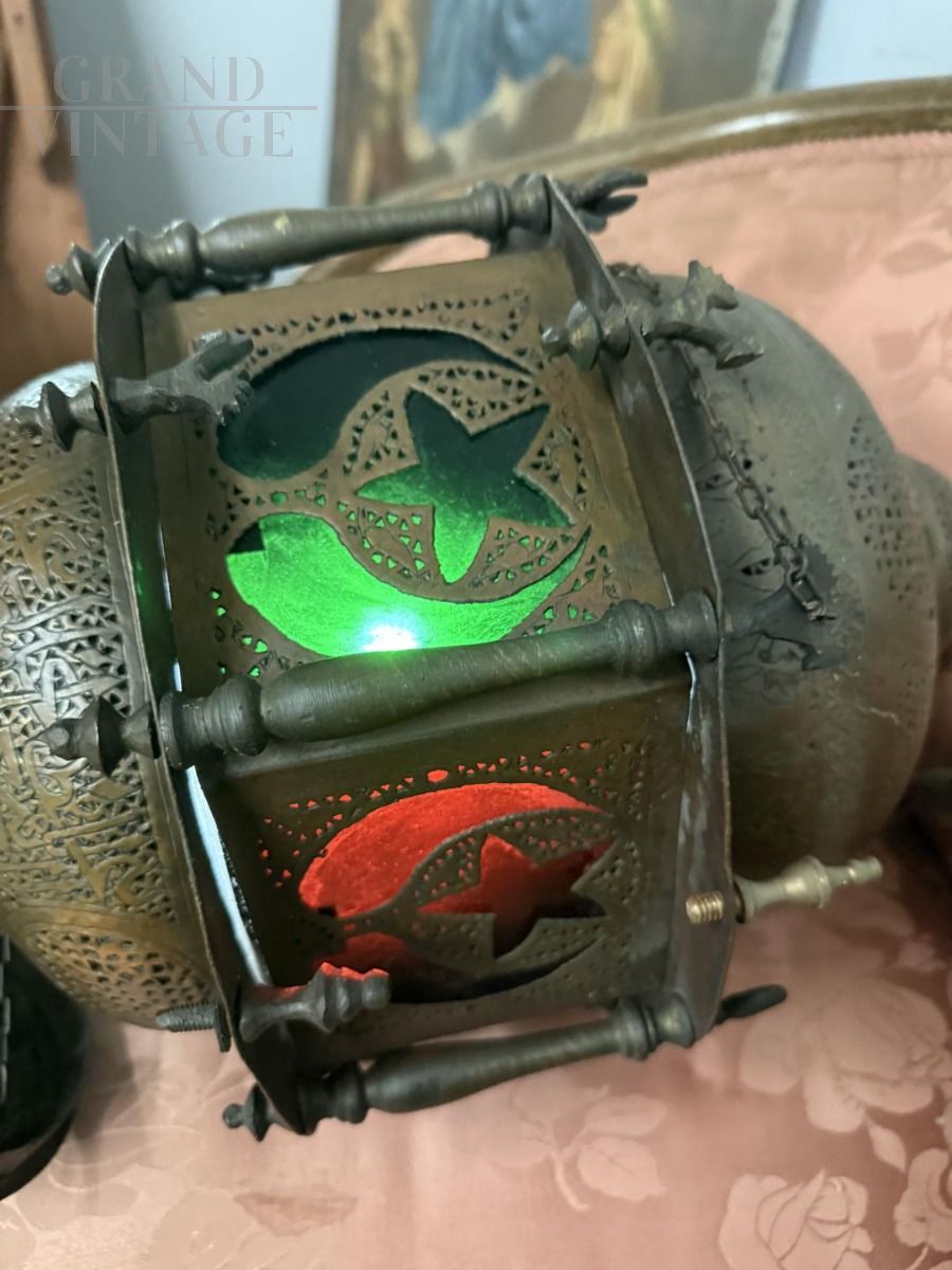 Lanterna marocchina anni '20 in rame con vetri colorati