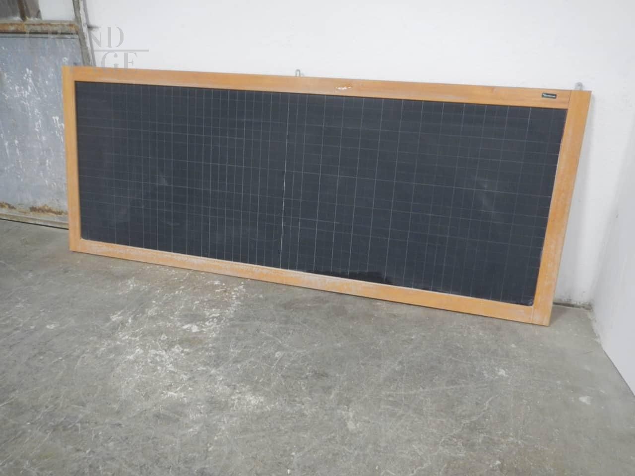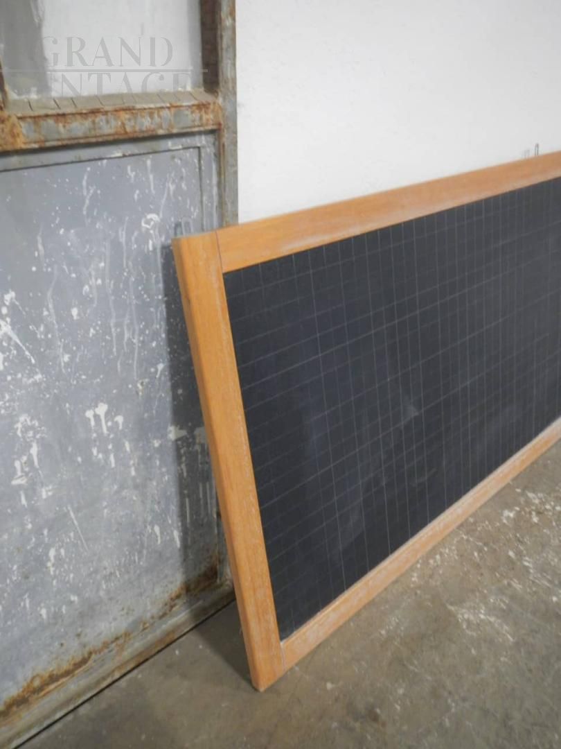 Lavagna scolastica vintage da parete in ardesia a quadretti bianchi da un lato e senza dall'altro, con cornice in legno di abete, prodotta dalla ditta italiana Vastarredo negli anni '70. In buone condizioni con i naturali segni d’uso, completa di ganci per appenderla. Disponibili 2 pezzi, il prezzo si riferisce al singolo pezzo.