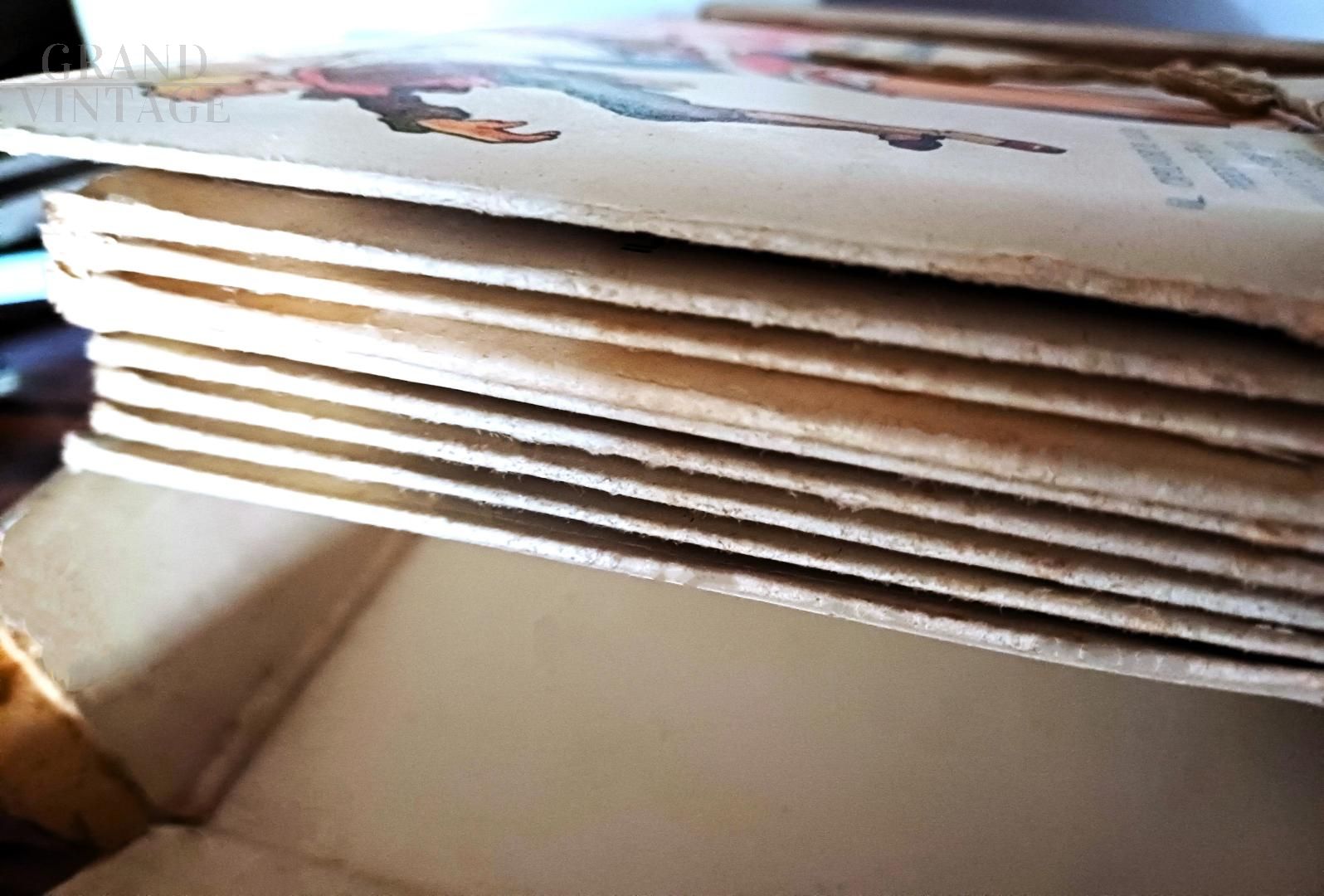 Edizione storica del capolavoro di Carlo Collodi, sceneggiato, parlato e cantato su 18 dischi da 78 giri Durium infrangibili (antecedente del vinile), suddivisi in 9 puntate (ogni puntata contiene due dischi in custodie cartonate illustrate). Cofanetto originale cartonato con dorso in tela e illustrazioni di Attilio Mussino. Dim cofanetto (cm) 28 x 27 x 5. Dim custodie (cm) 24,5 x 25 cm Edizione: Compagnia Durium, Milano Adattamento: A. Airoldi e G. Cantini. Commenti musicali: M. Mariotti. Scenari e figure: Attilio Mussino. Anno: 1933-1934 Condizioni: ottime, buon esemplare di questa opera originale dell'epoca, cofanetto con tracce d'uso su bordi e rilegatura.
