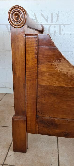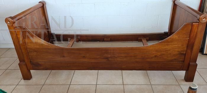 Elegante letto singolo del periodo Impero, Italia XIX secolo, in noce nazionale biondo, proviene da casa importante della provincia di Vercelli.