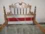 Letto matrimoniale in stile antico intagliato e dorato a mecca, anni '70