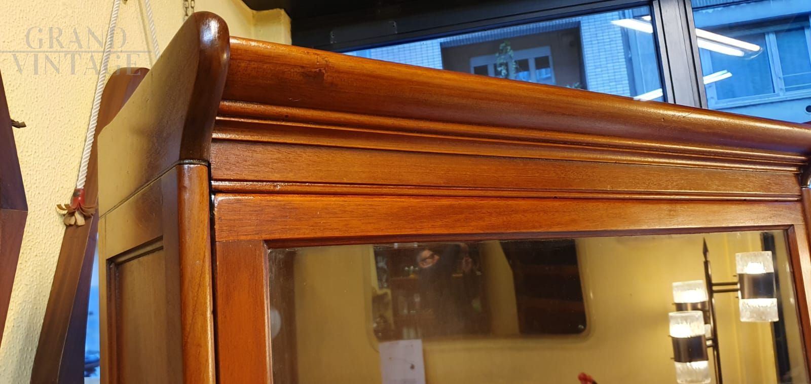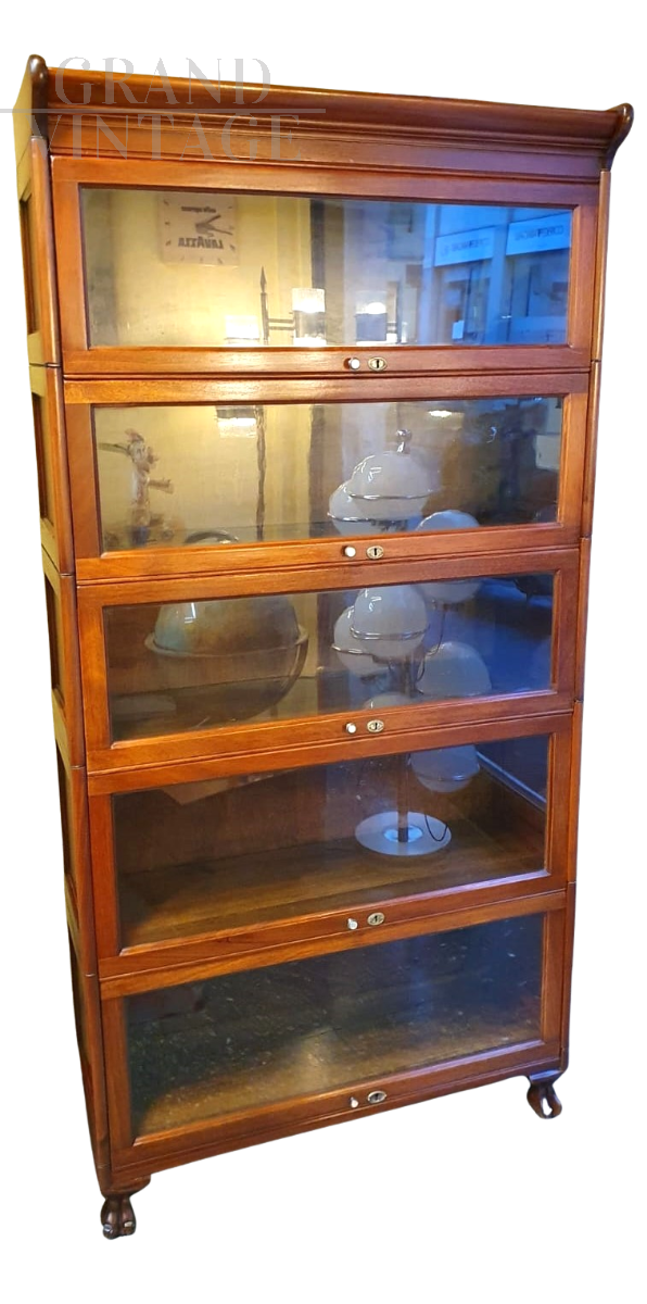 Libreria componibile americana Globe Wernicke anni '30 in mogano chiaro, restaurata, composta da 5 elementi removibili con ante a vetrina a scomparsa, perfetta come espositore, come libreria da ufficio o come credenza da cucina.