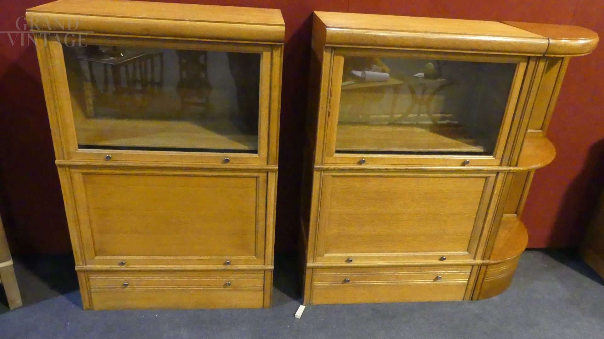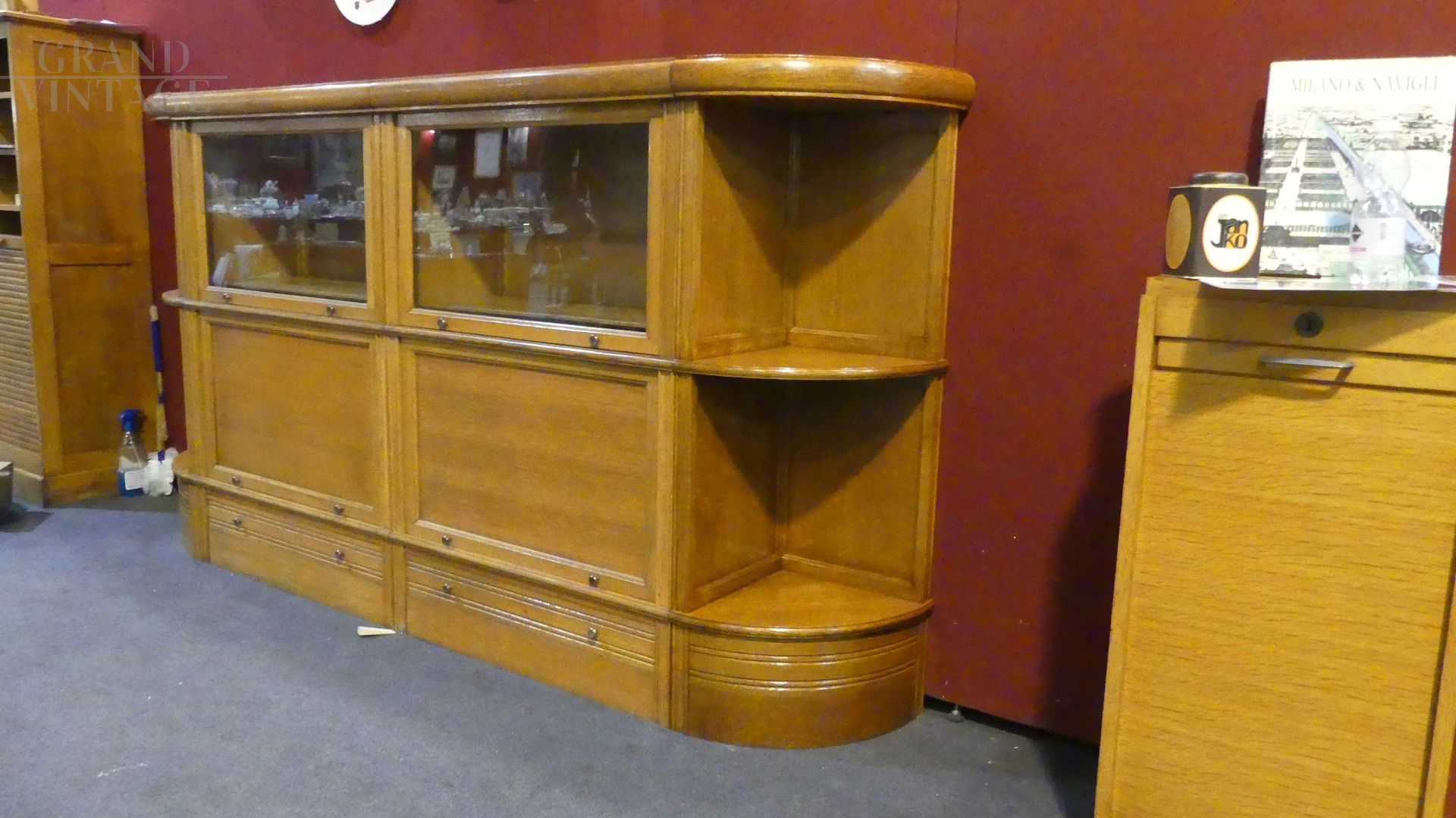 Vetri e pomoli originali, ripiani spostabili a scaletta.