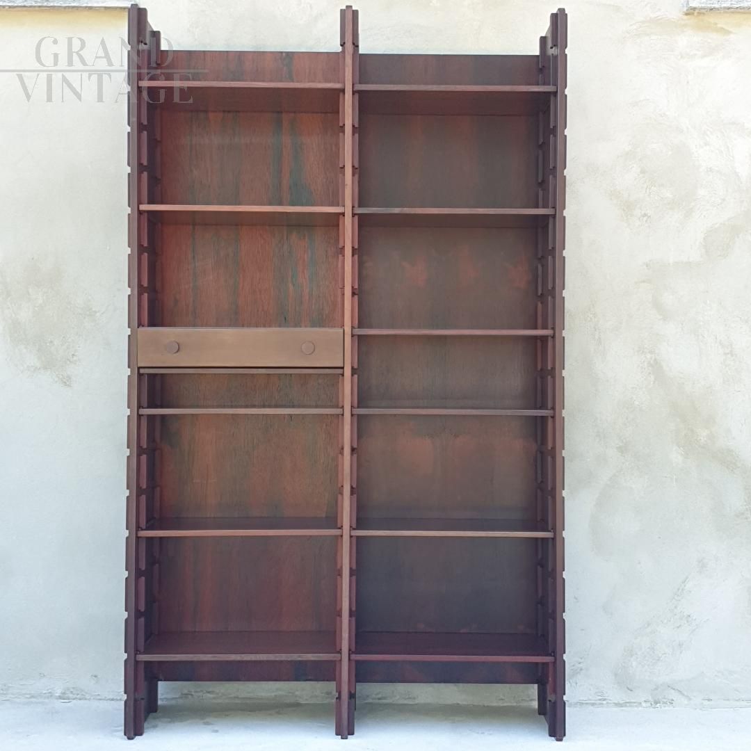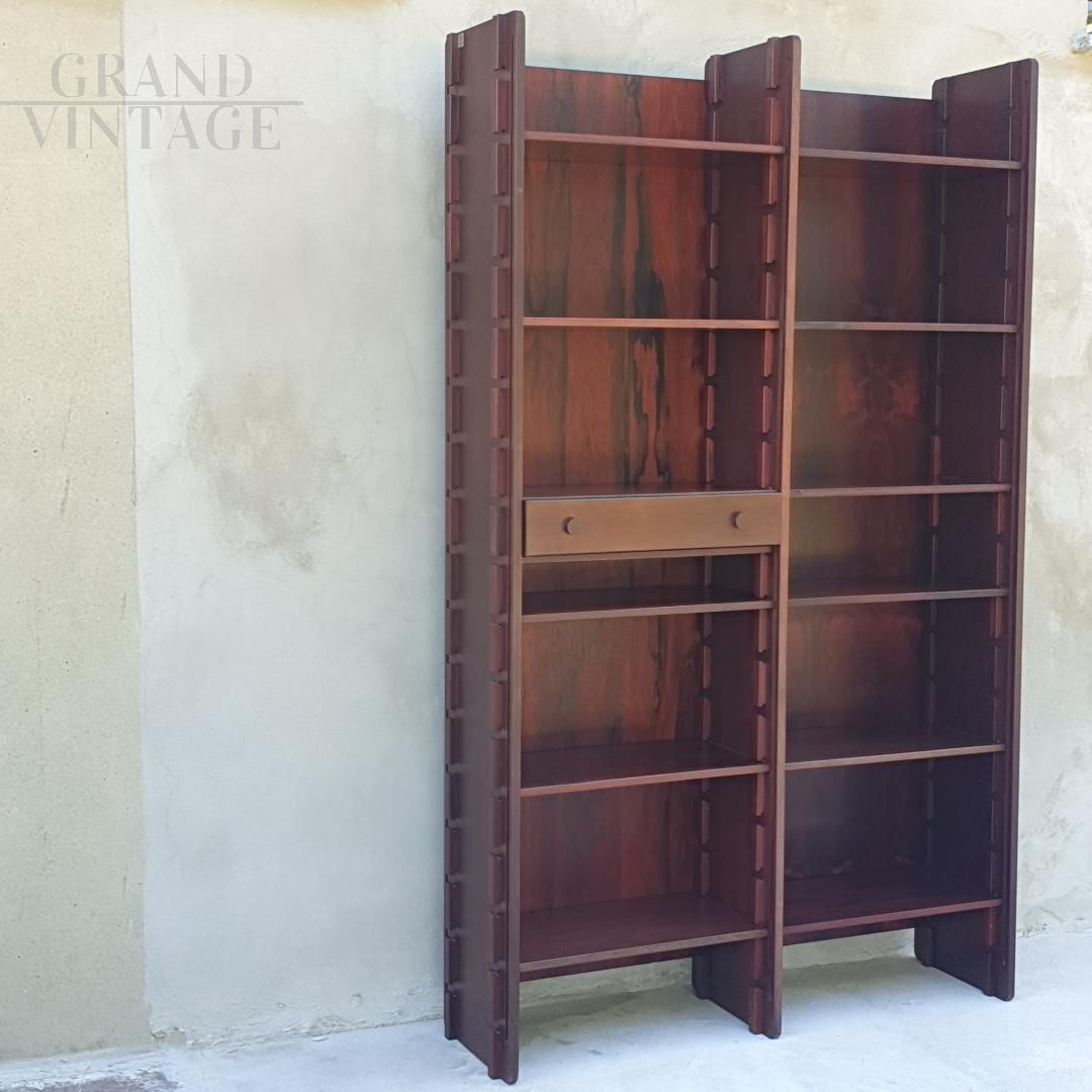 Libreria componibile in palissandro, mod. 540, di Gianfranco Frattini, Produzione Bernini 1960.