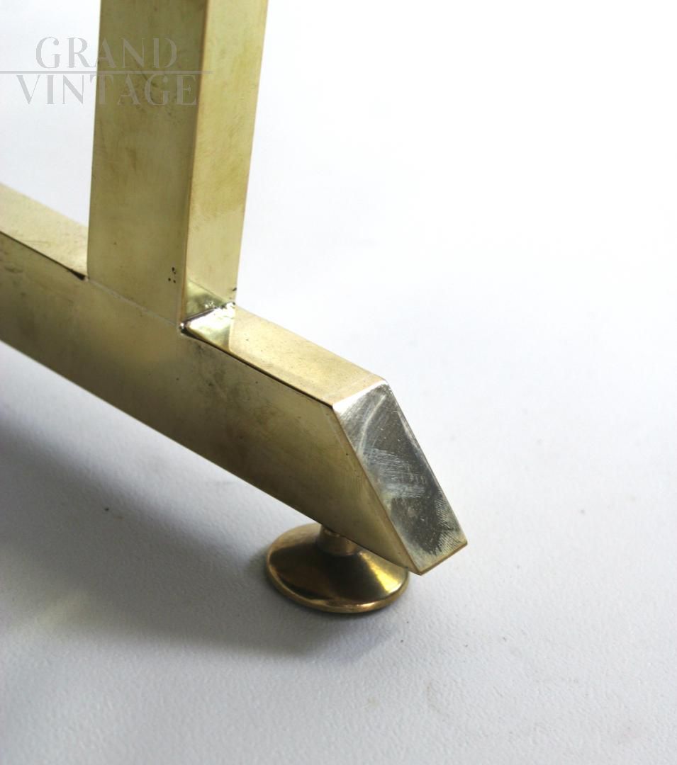 Libreria design modernariato in ottone e vetro nero, anni '70