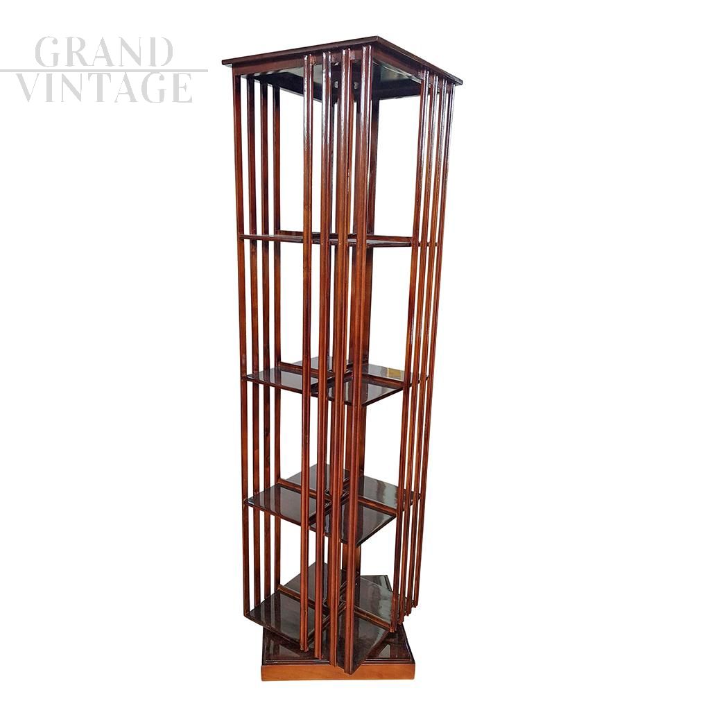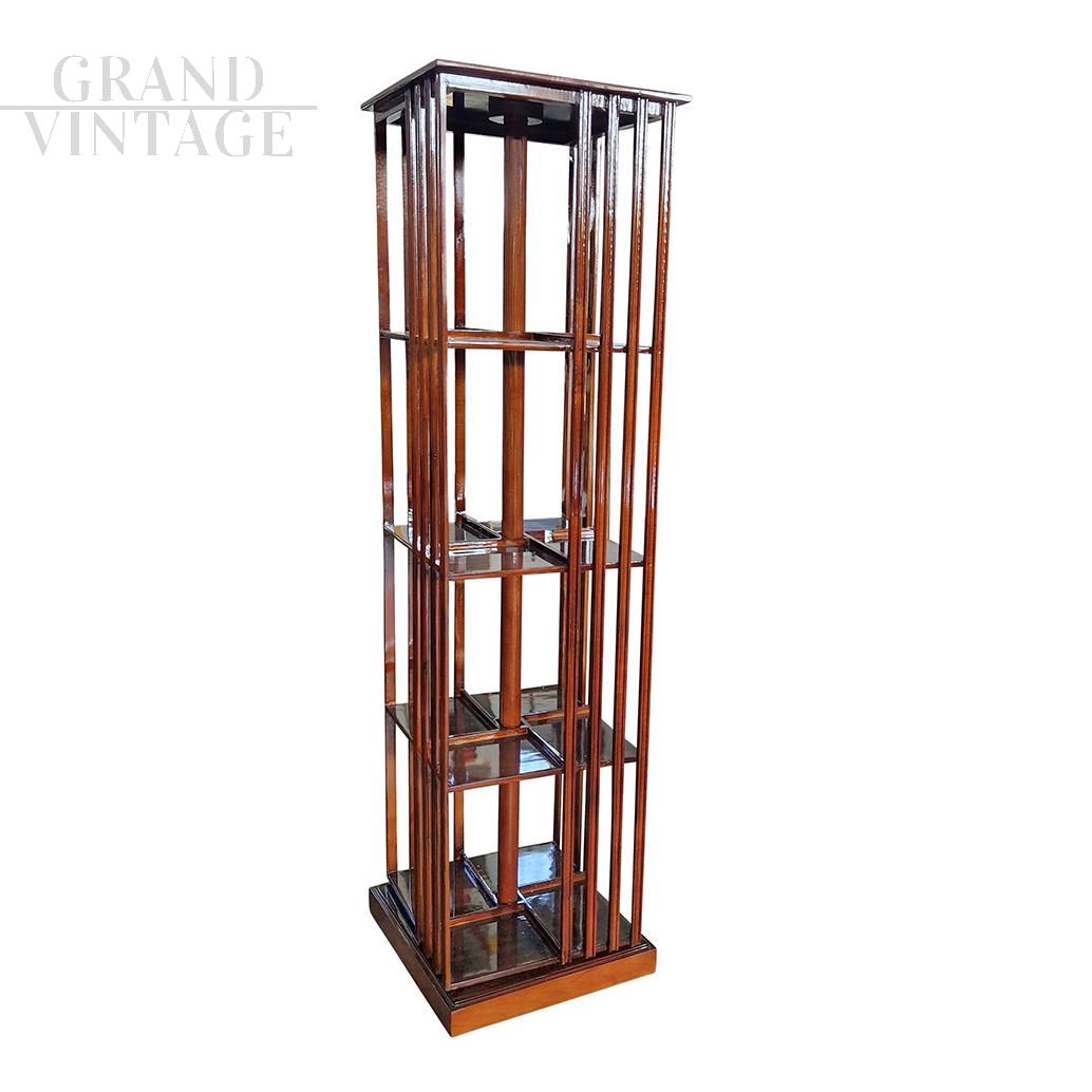 Libreria revolver girevole quadrangolare in noce