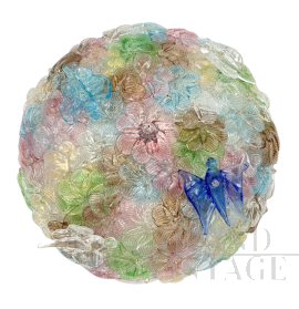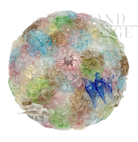 Prix normal 700,00 € - Plafoniera con fiori e farfalle in vetro di Murano coloratoPrix Spécial Prix Spécial 600,00 €