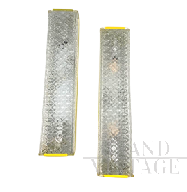 Prix normal 500,00 € - Coppia applique o plafoniere vintage lunghe in vetro e metallo gialloPrix Spécial Prix Spécial 450,00 €