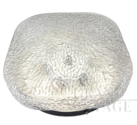 Prix normal 400,00 € - Coppia di plafoniere vintage anni '60 in vetro lavorato e metallo biancoPrix Spécial Prix Spécial 600,00 €