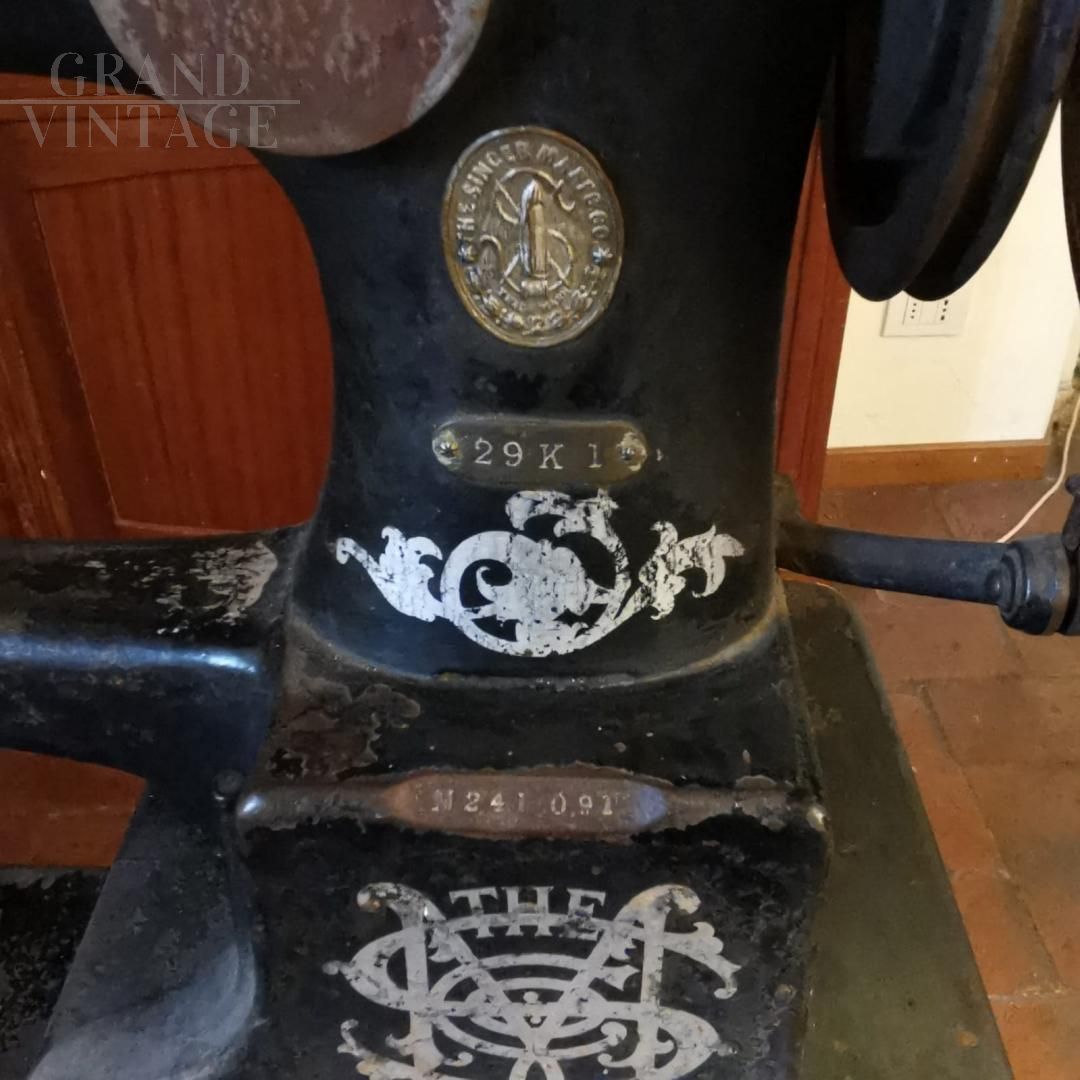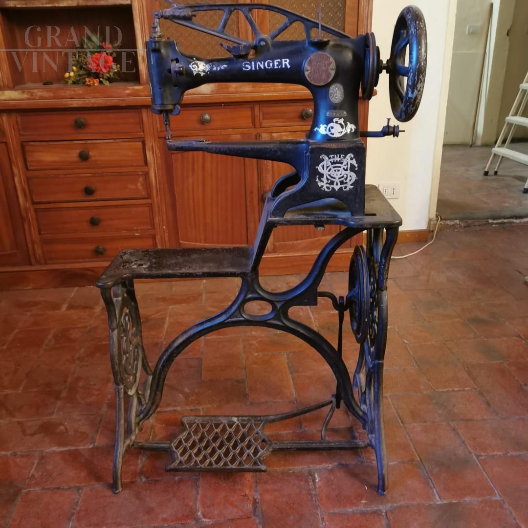 Splendida macchina da cucire Singer per calzolai in ferro e ghisa, modello 29k1, numero matricola M 241091.