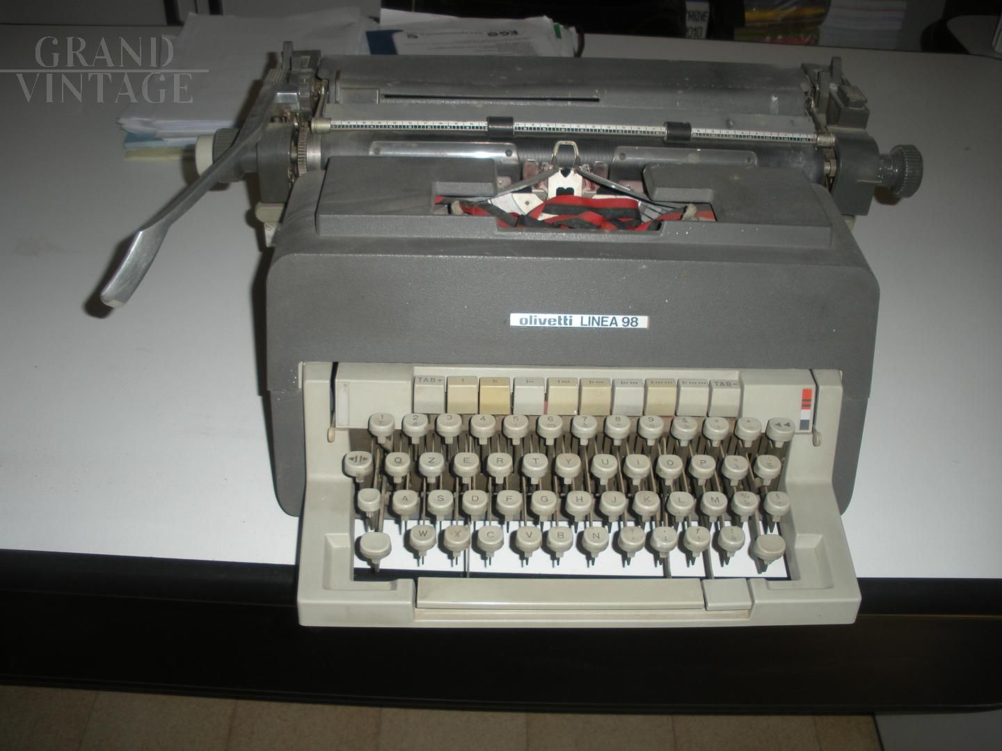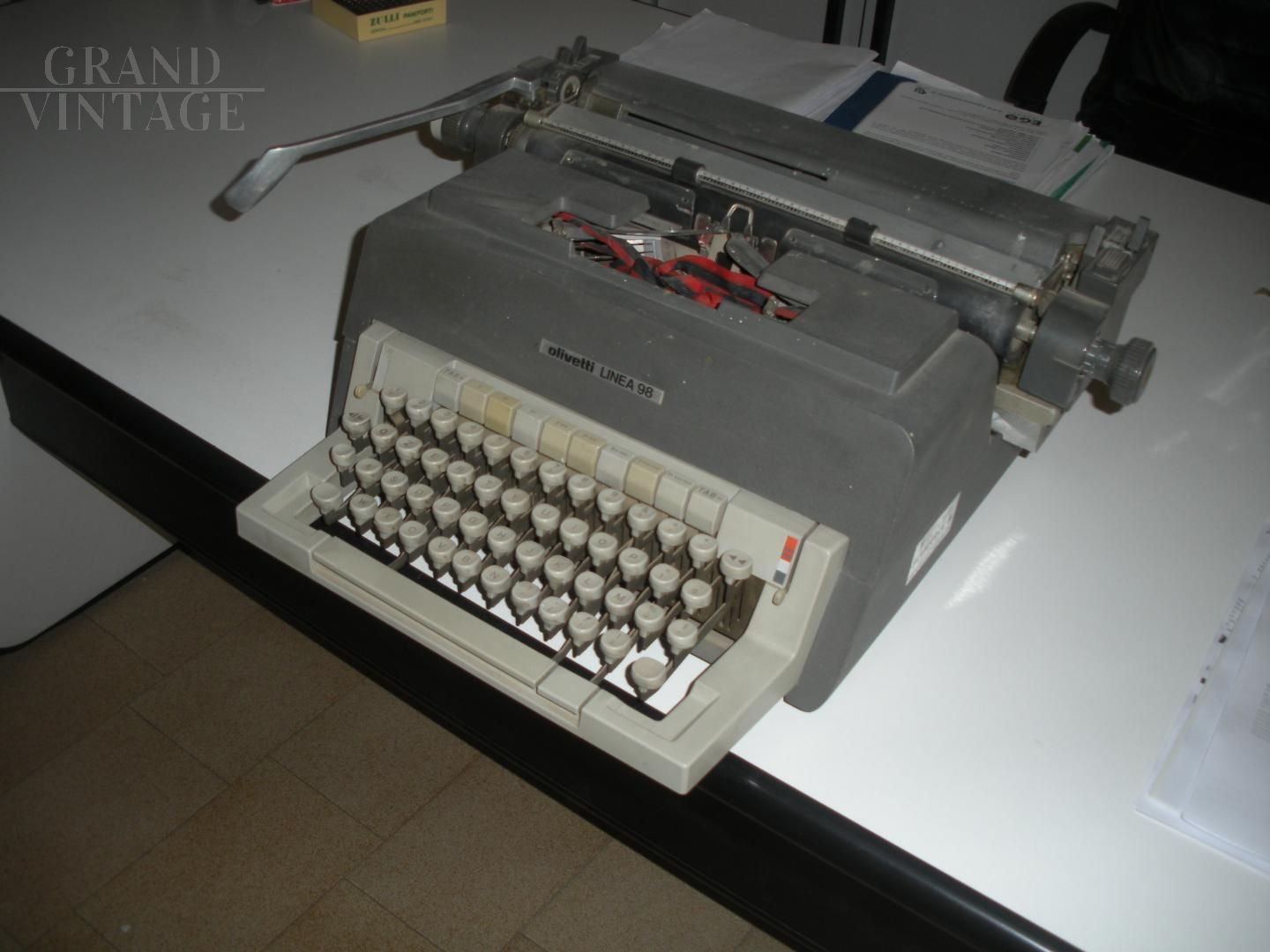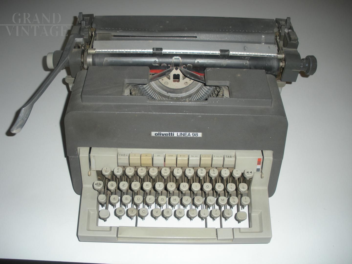 Macchina da scrivere Olivetti Linea 98 di colore grigio scuro nelle parti metalliche e grigio chiaro nella tastiera, che invece non è metallica. Praticamente funzionante e integra!