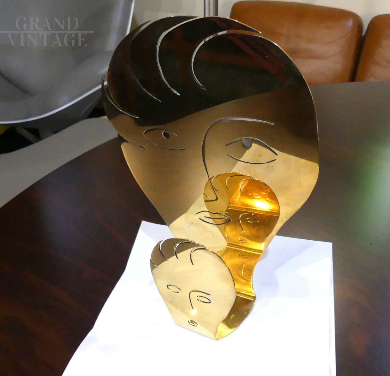 Bellissima scultura di Gio Ponti in ottone dorato raffigurante Madre e Figlia.