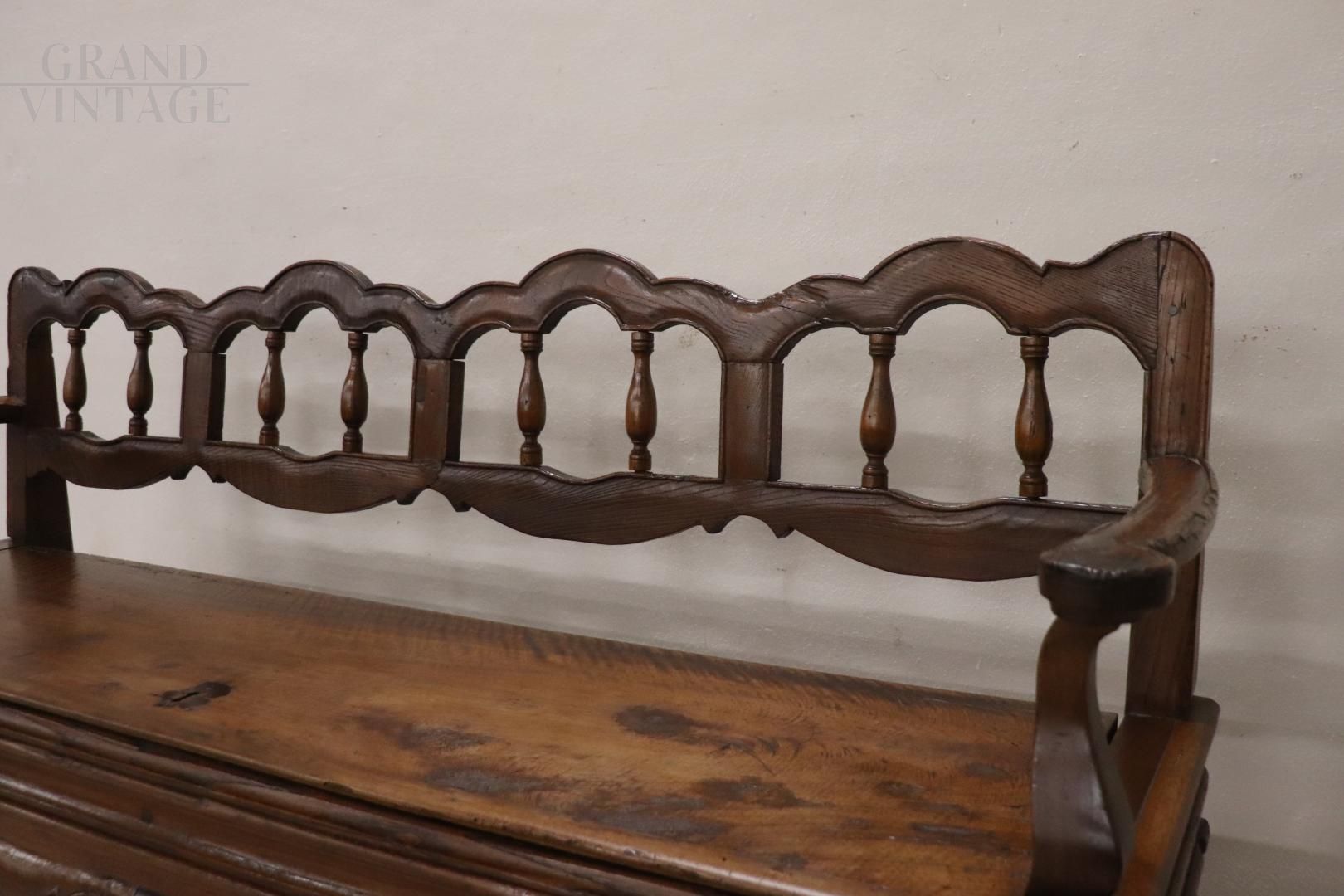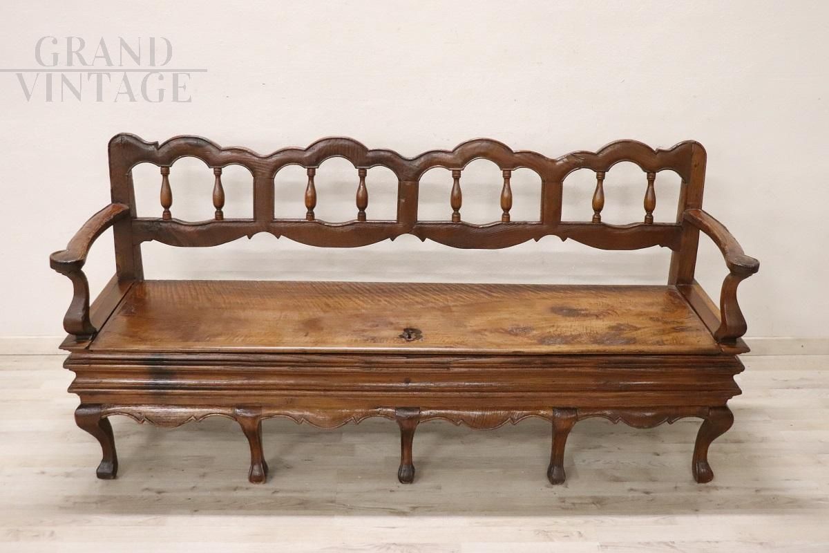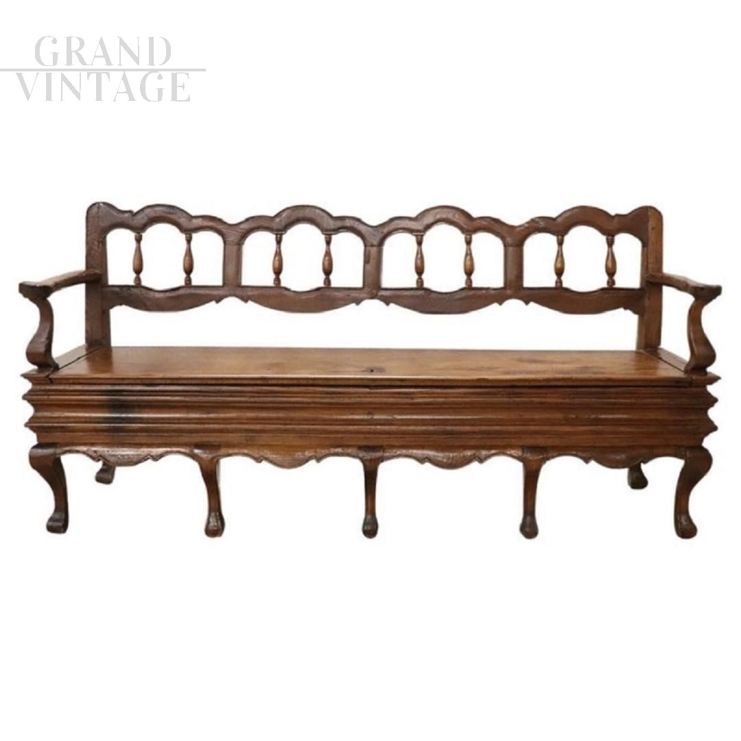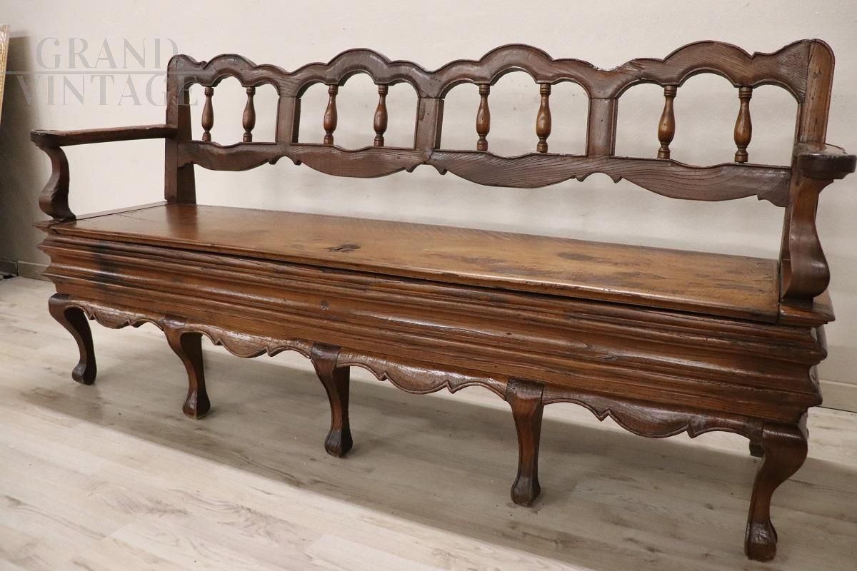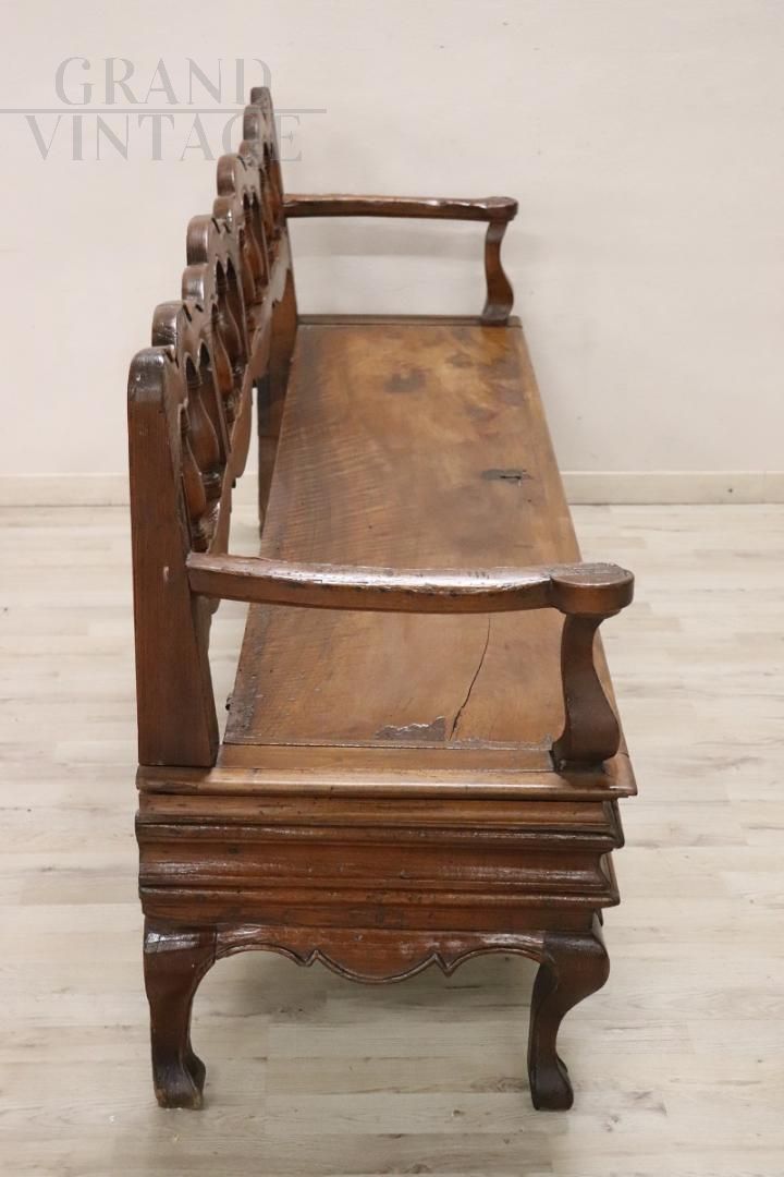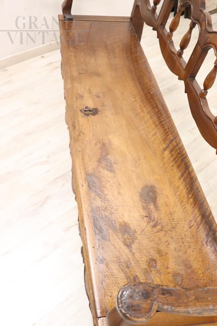 Maestosa panca antica in noce del XVIII secolo