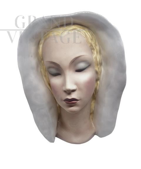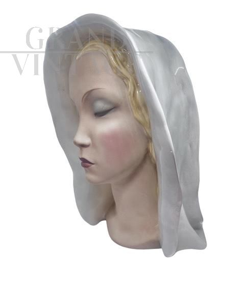 Scultura in porcellana le Bertetti dal titolo Malinconia raffigurante un volto di donna con un velo bianco sul capo, Torino 1979, firmata alla base e completa di marchio originale, in ottime condizioni senza segni di usura.