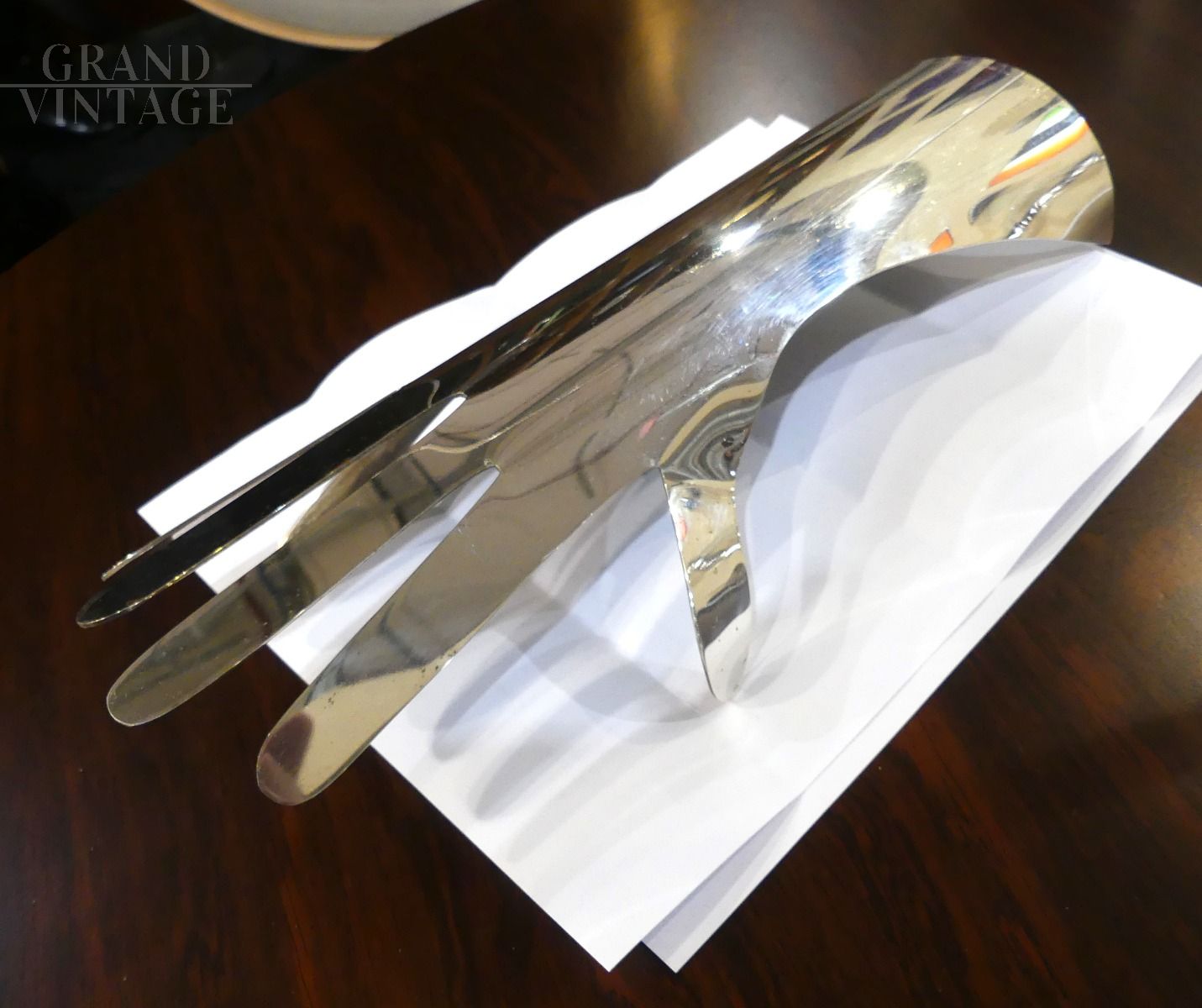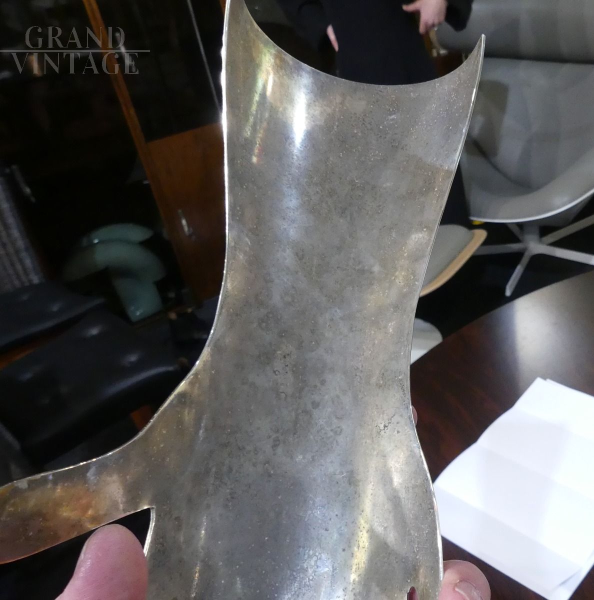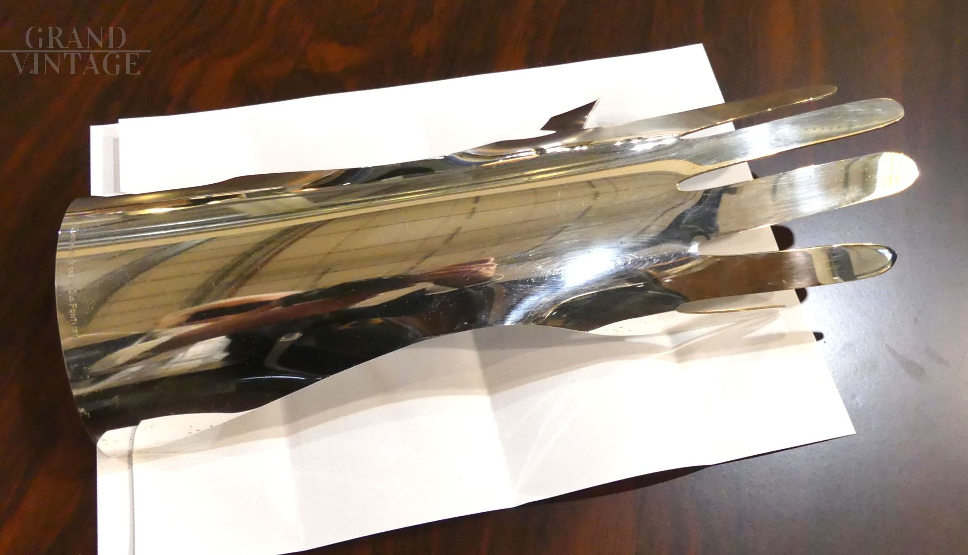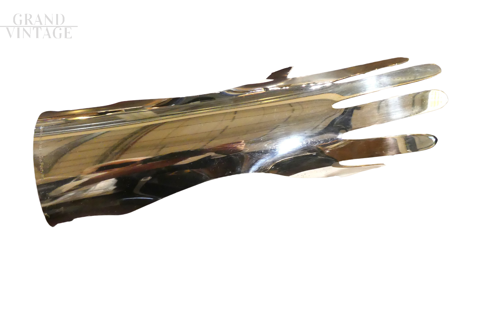 Bellissima scultura di Gio Ponti in lamina di metallo argentato raffigurante una mano stilizzata. L'opera è firmata.
