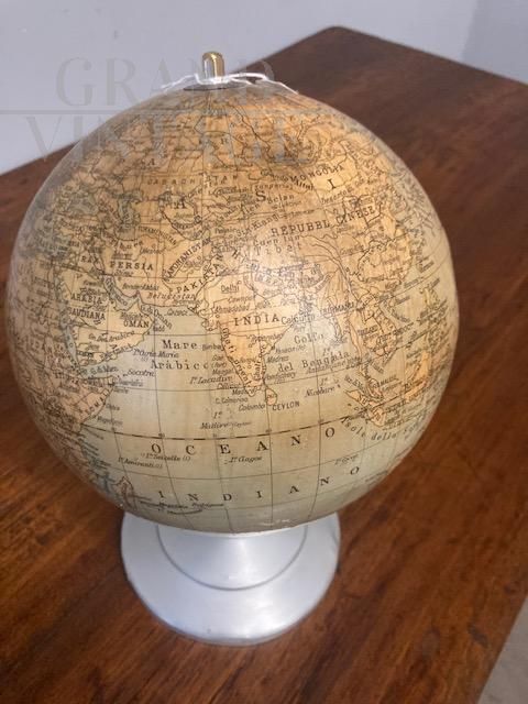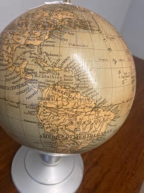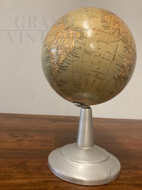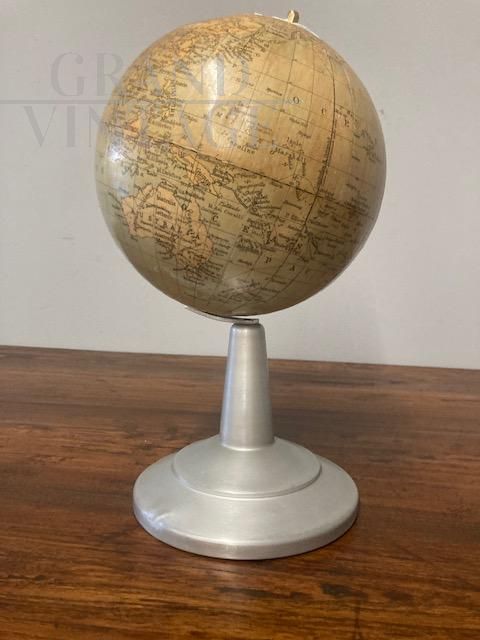 Mappamondo vintage anni '60 di manifattura Italiana, con base in metallo spazzolato, in ottimo stato.