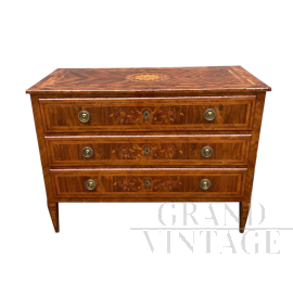 Antico cassettone Luigi XVI a 3 cassetti con intarsio floreale, XVIII secoloPrix Spécial Prix Spécial 5 130,00 €