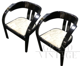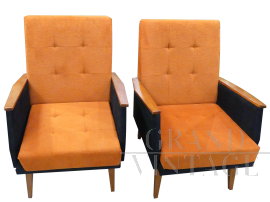 Coppia di poltrone vintage design in legno e tessuto arancione