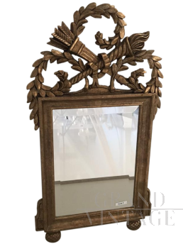 Specchiera dorata intagliata stile Impero con faretra e torcia