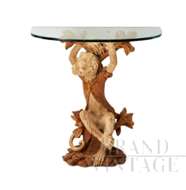 Tavolino consolle in legno intagliato e dorato in stile barocco con scimmia