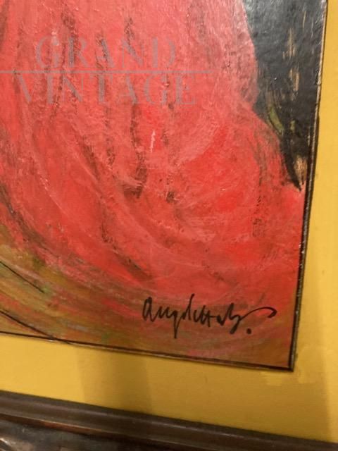 Antico dipinto raffigurante Maschere, olio su Cartone anni '20, firmato in basso a destra, datato sul retro con dedica.