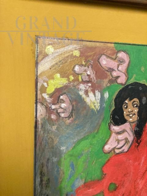 Maschere - Dipinto ad Olio su Cartone anni '20 firmato