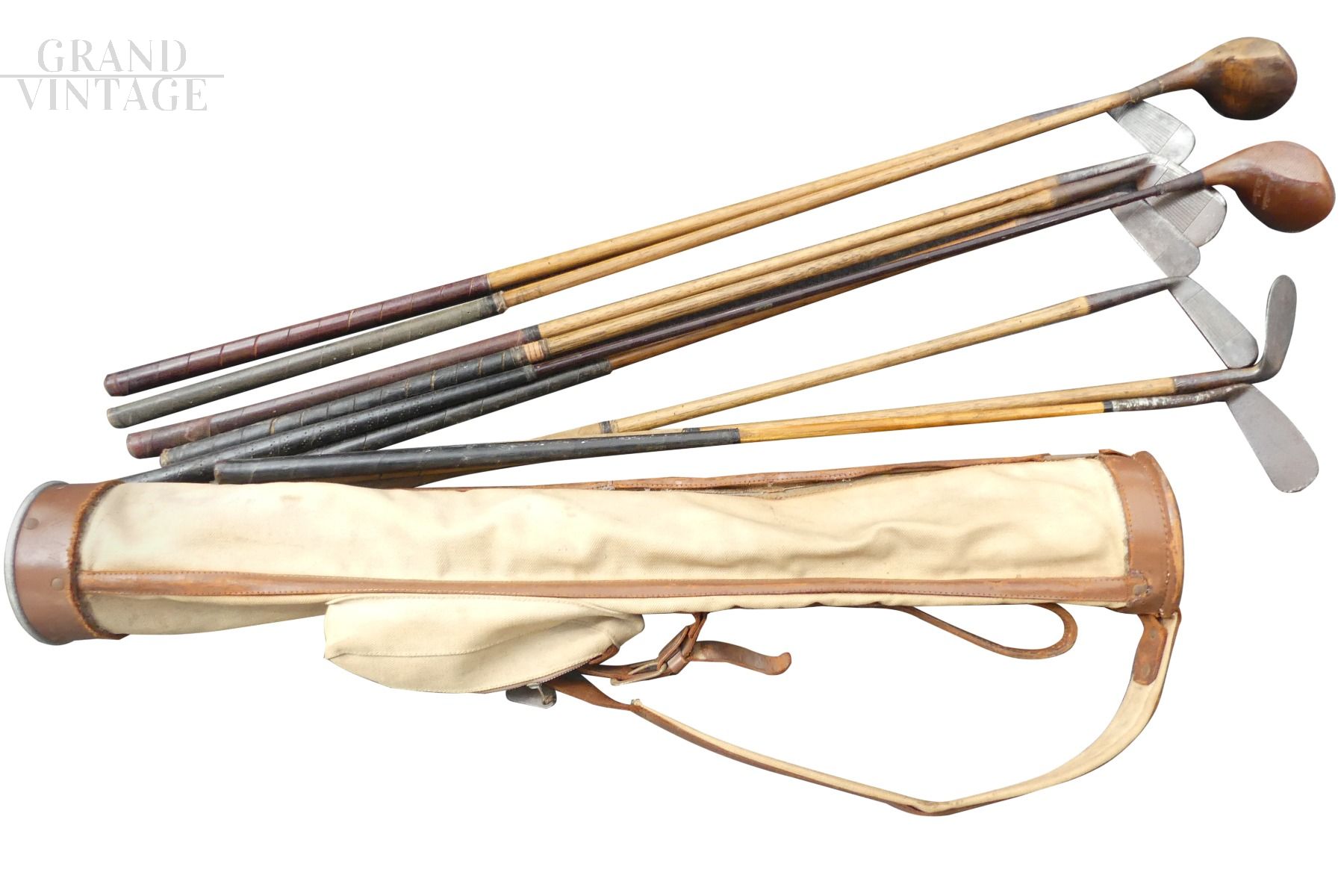 Mazze da Golf vintage dei primi del '900 di origini Canadesi, in legno e ferro, con sacca originale. Restaurate.