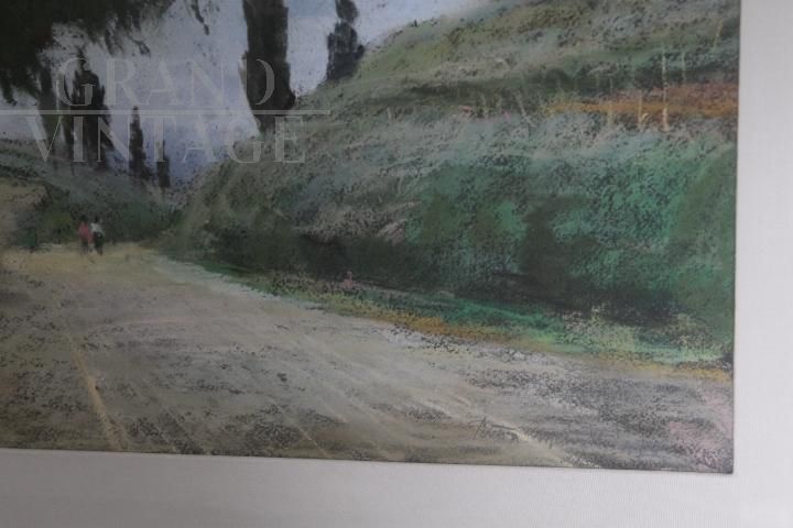 Menotti Pertici - coppia di dipinti a pastello con paesaggi toscani