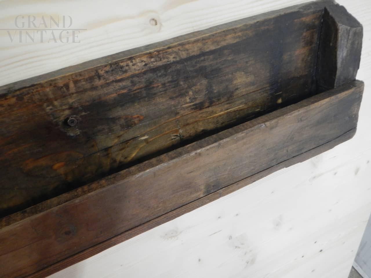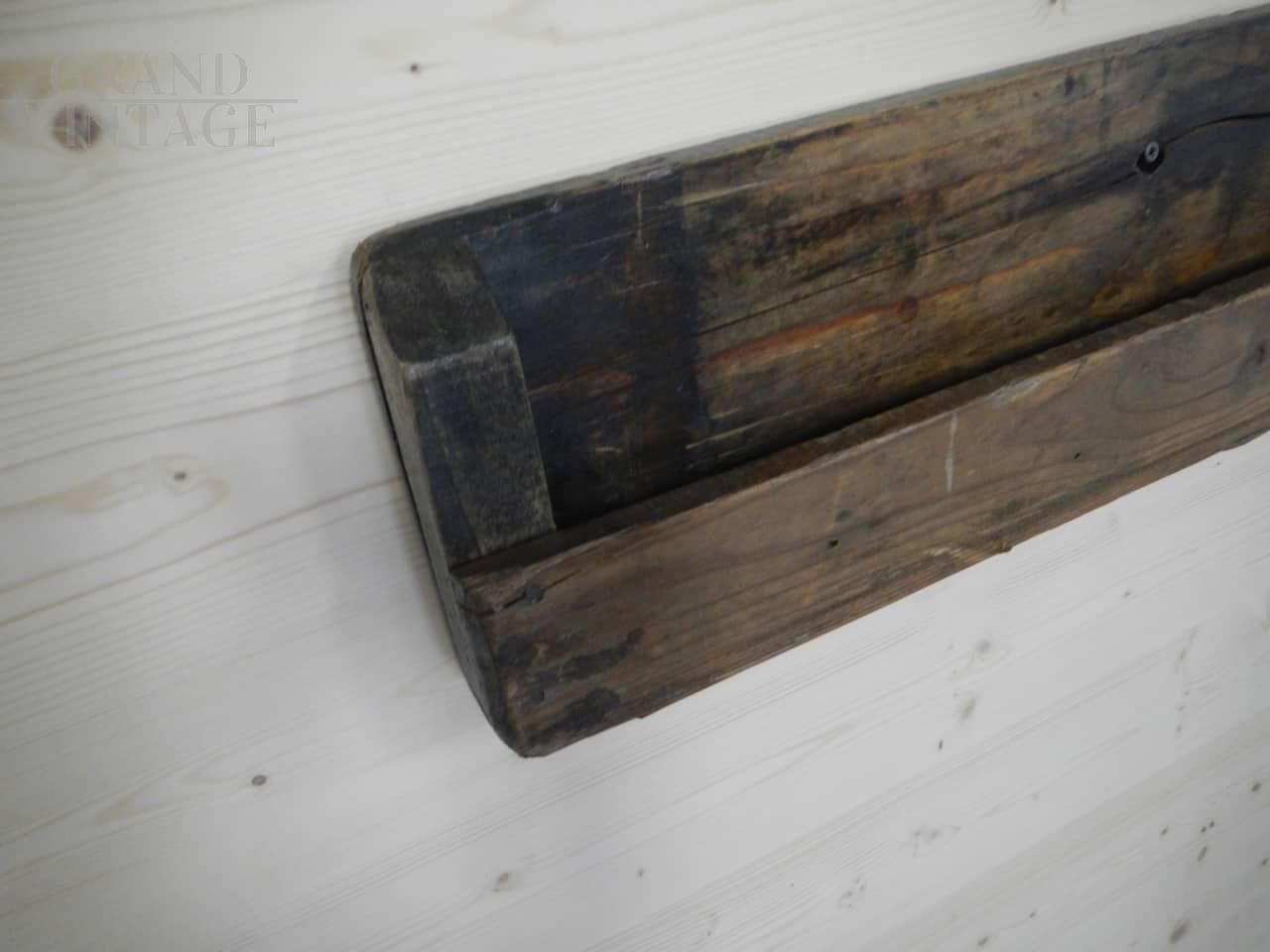 Mensola porta documenti o porta posta in legno di abete, vintage anni '50, larghezza interna 3 cm, altezza 7 cm, con fori per appenderla.