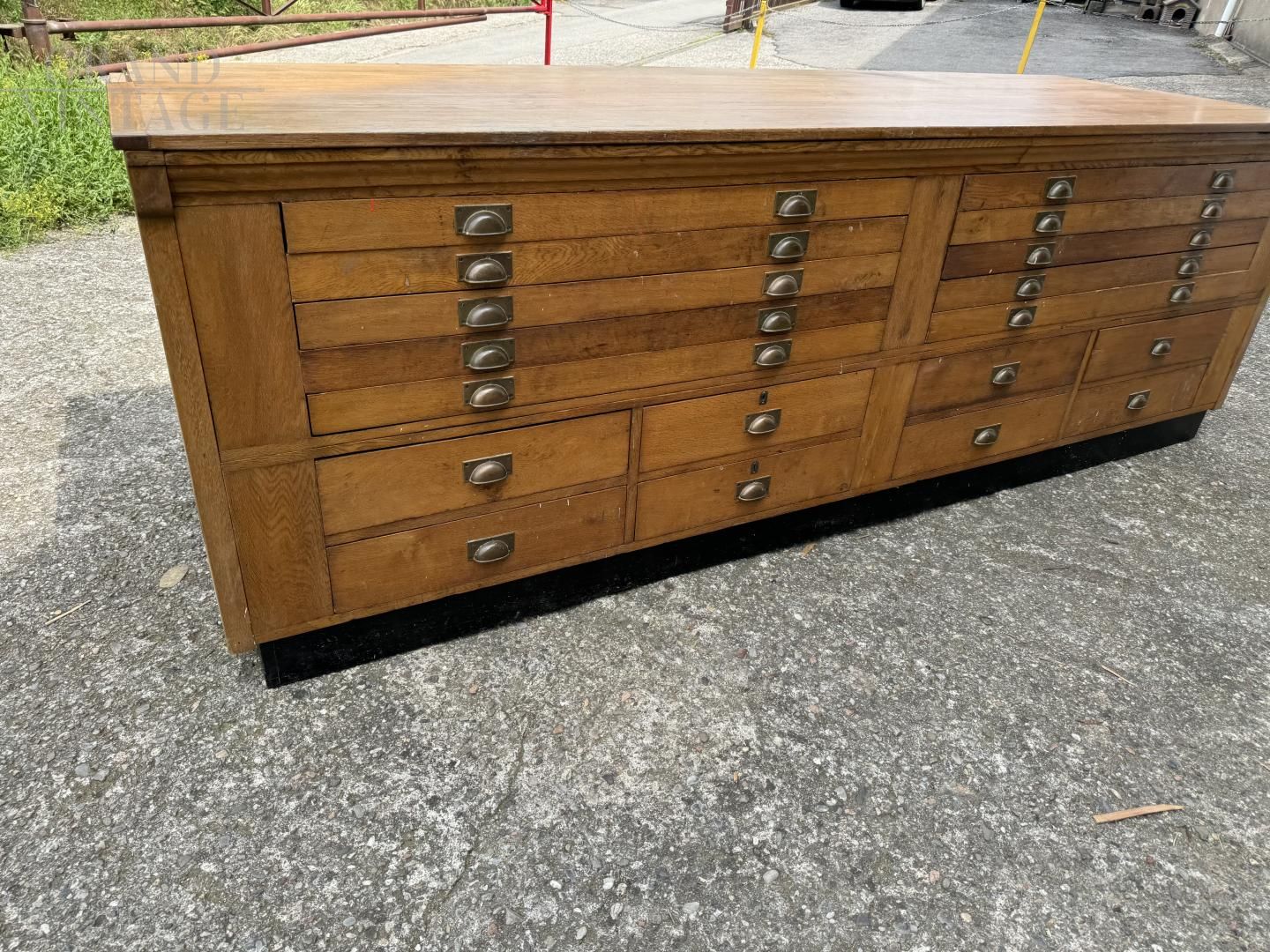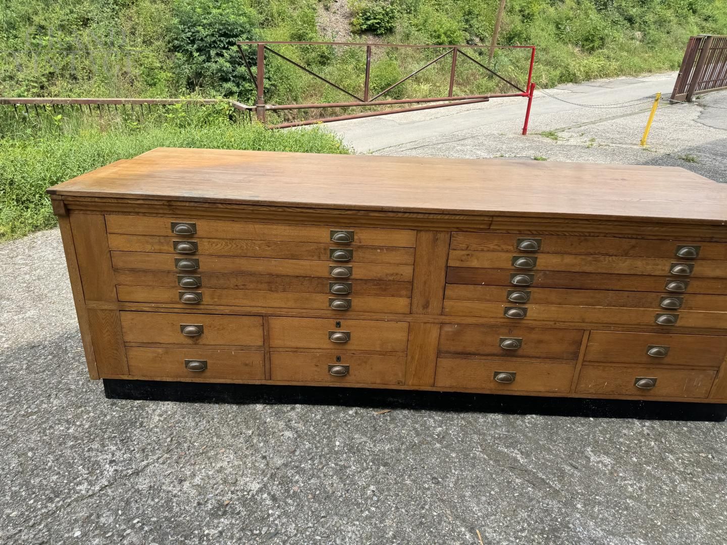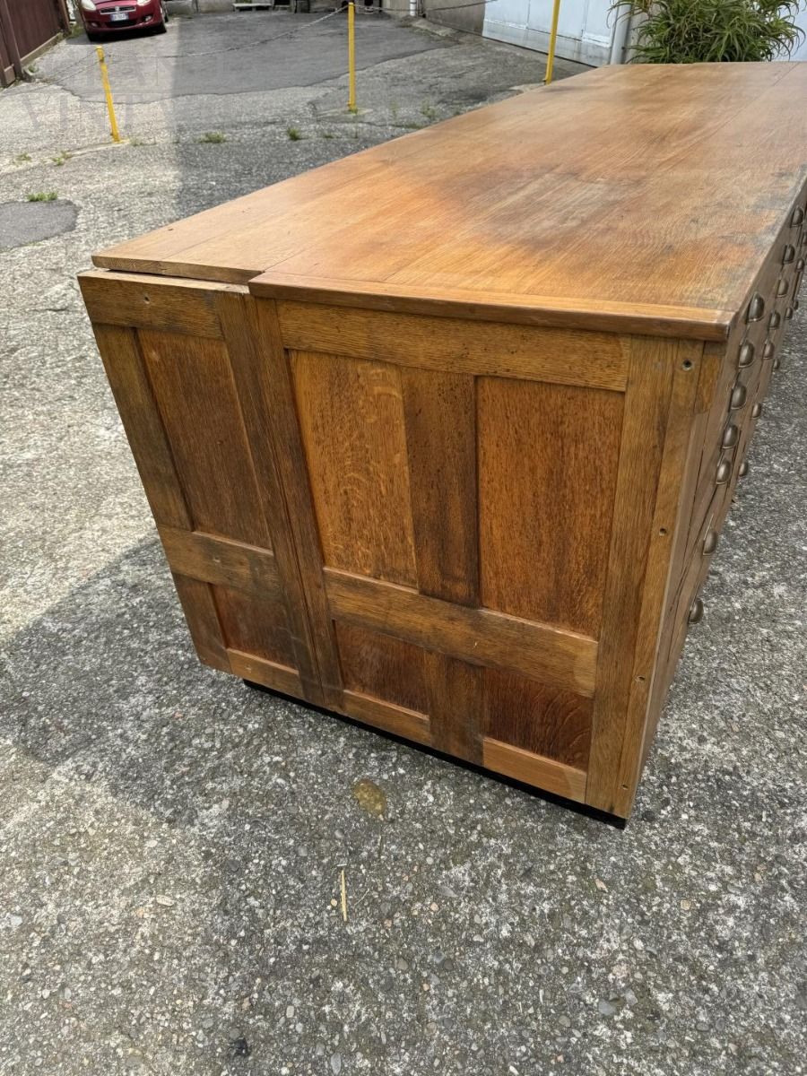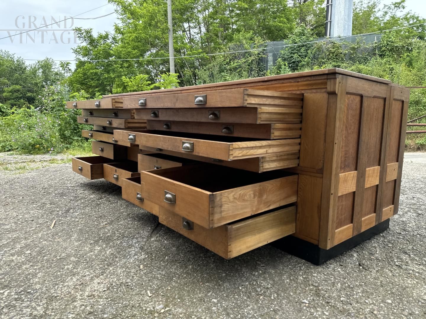 Mobile bancone da merceria a cassetti in rovere massiccio