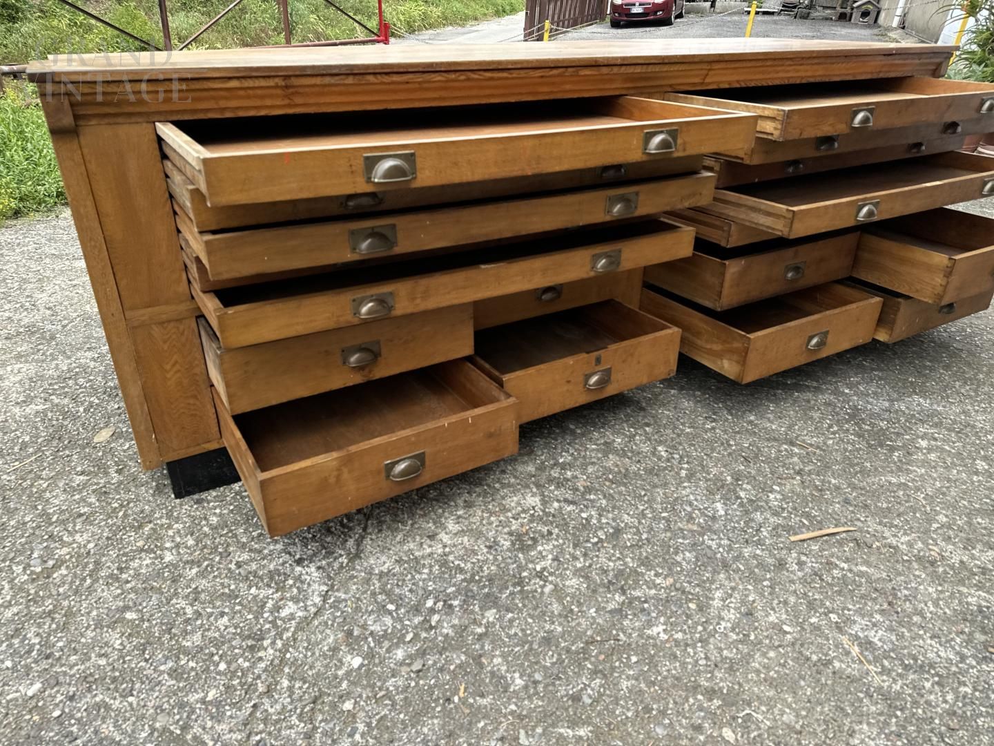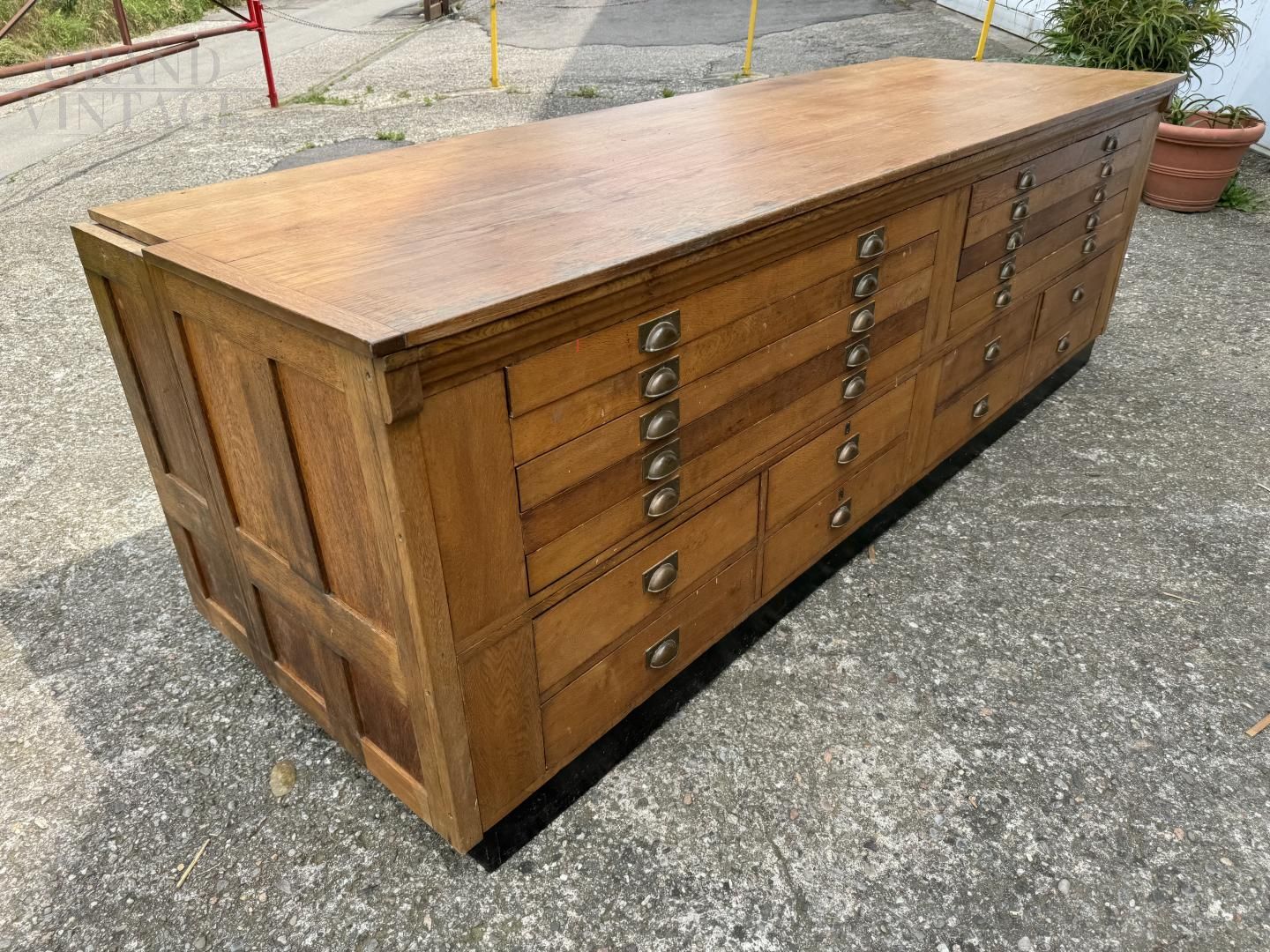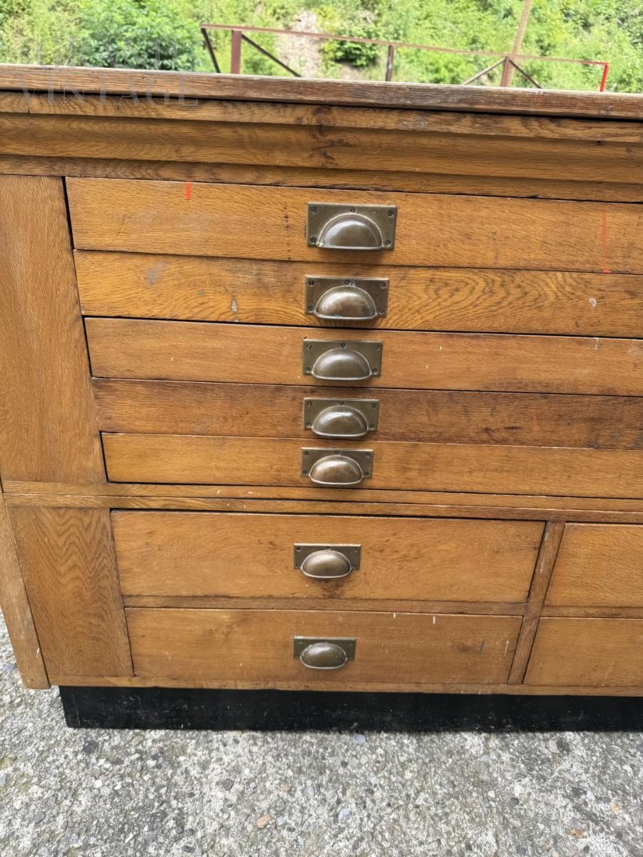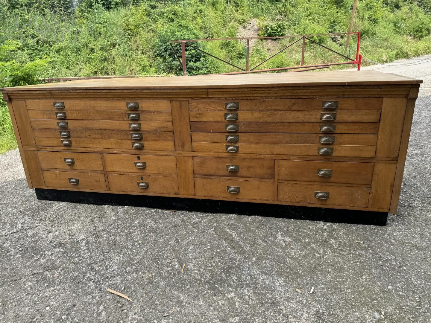 Mobile bancone da merceria a cassetti in rovere massiccio