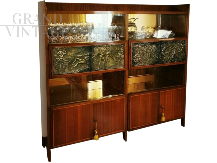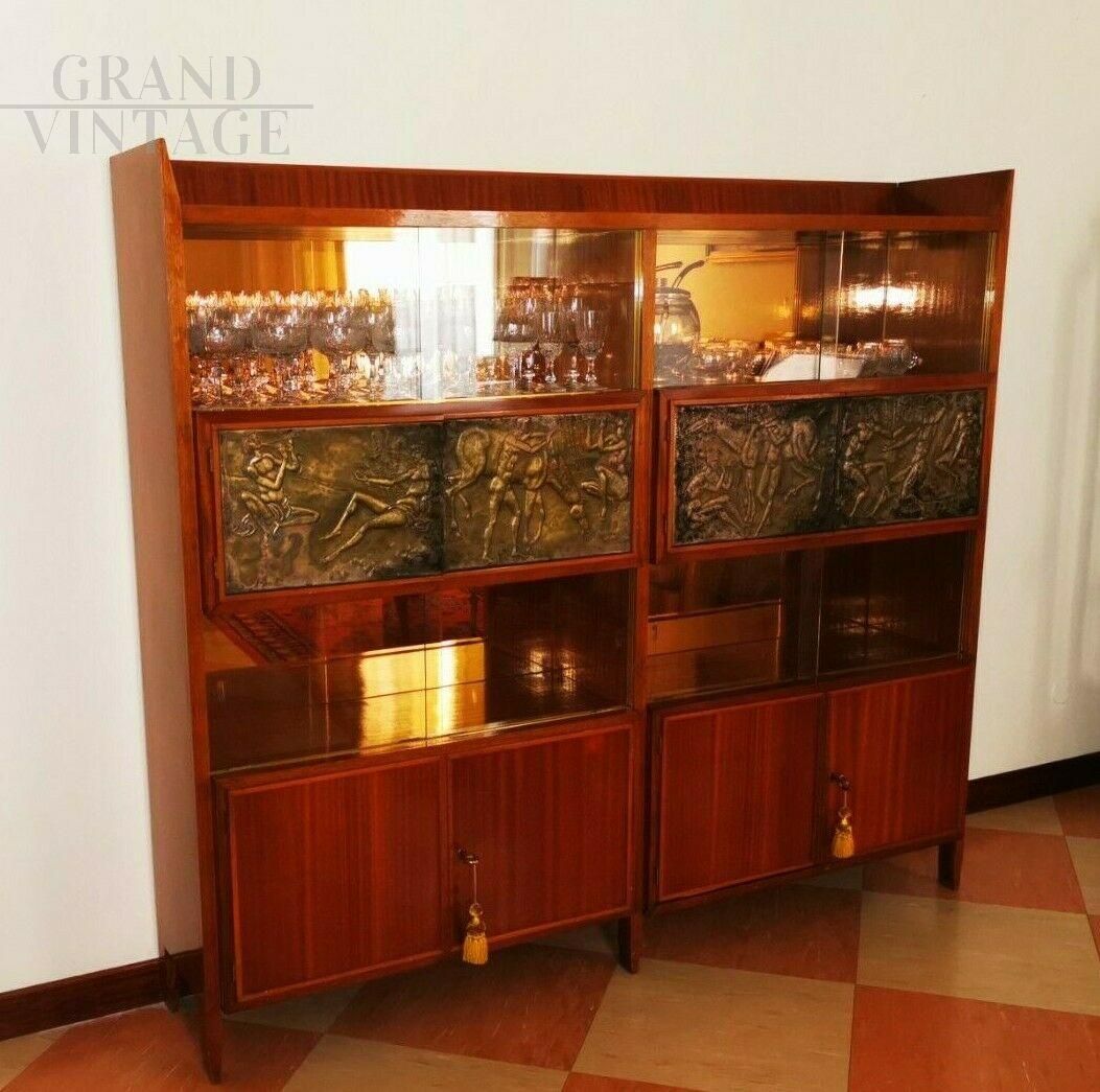 Mobile bar di Vittorio Dassi con formelle d'artista, Italia anni '50