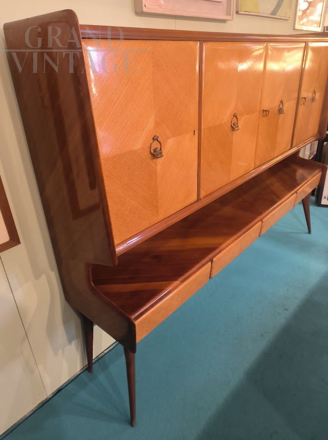Mobile buffet per sala pranzo di alta qualità, impiallicciato in acero e mogano, Italia anni '50, attribuzione all'architetto Ico Parisi, pseudonimo di Domenico Parisi (Palermo 23 settembre 1916 - Como 19 dicembre 1996).