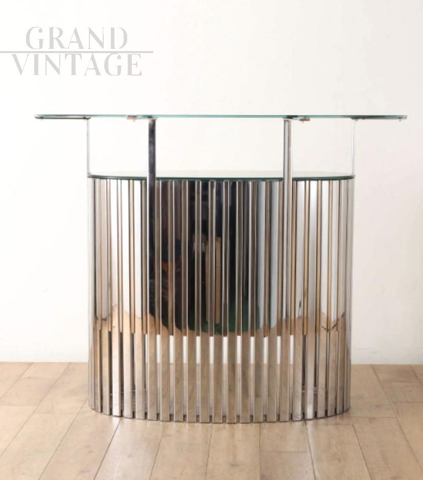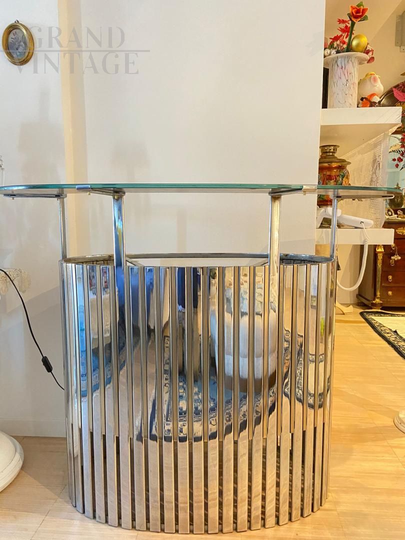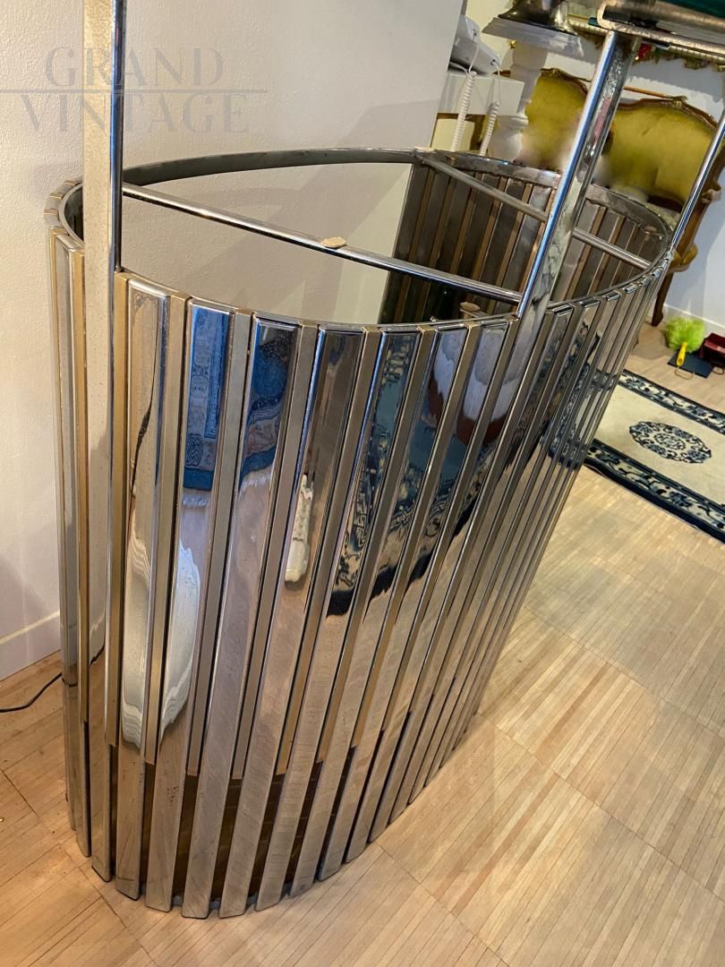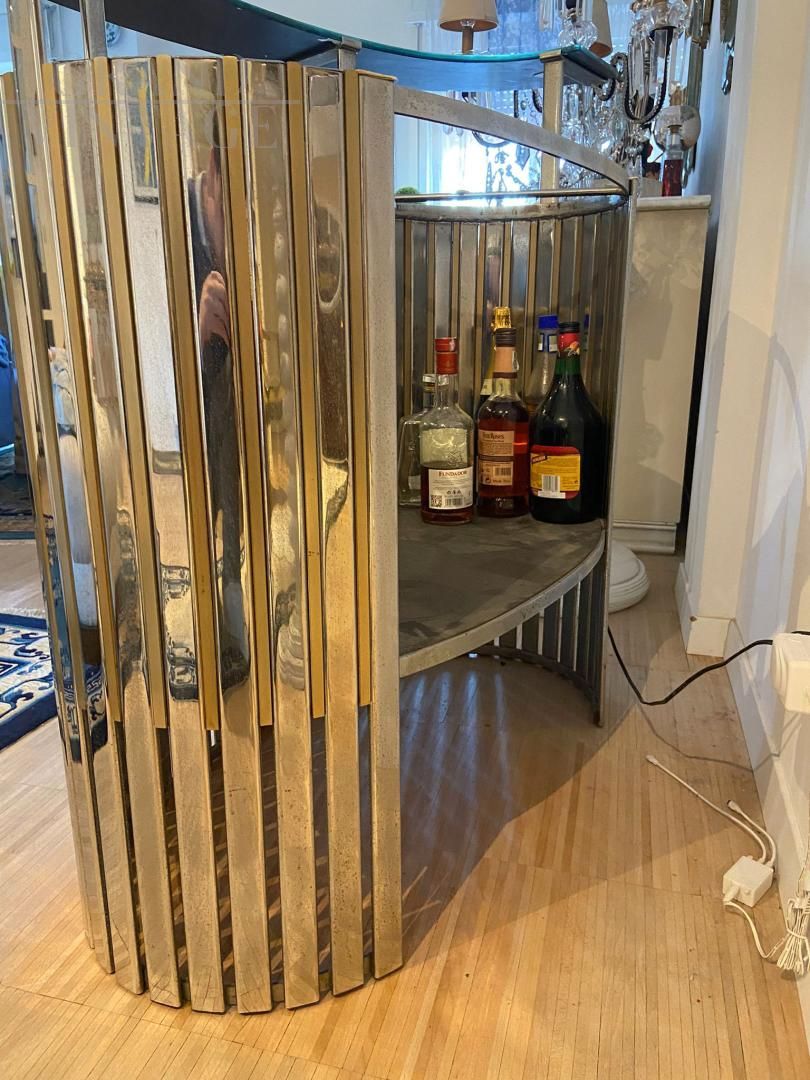 Mobile cocktail bar vintage in metallo cromato e ottone, Italia anni '70