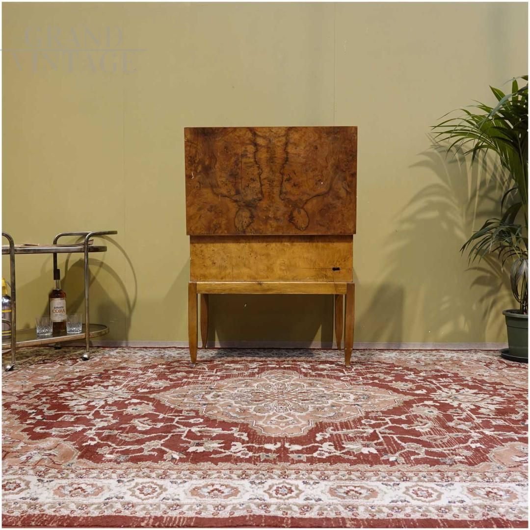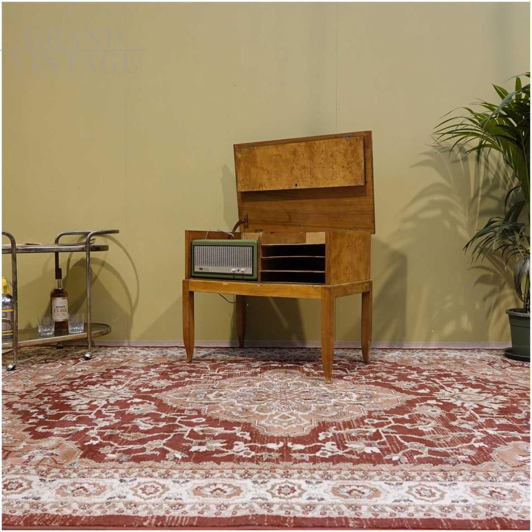 Affascinante mobile in radica con giradischi incorporato, un autentico pezzo d’arredo che richiama l’eleganza e il calore dell’Italia degli anni ’60/’70. La finitura lucida e i dettagli curati lo rendono ideale per ambientazioni retrò, set cinematografici, shooting fotografici o eventi a tema dal sapore nostalgico e scenografico.
